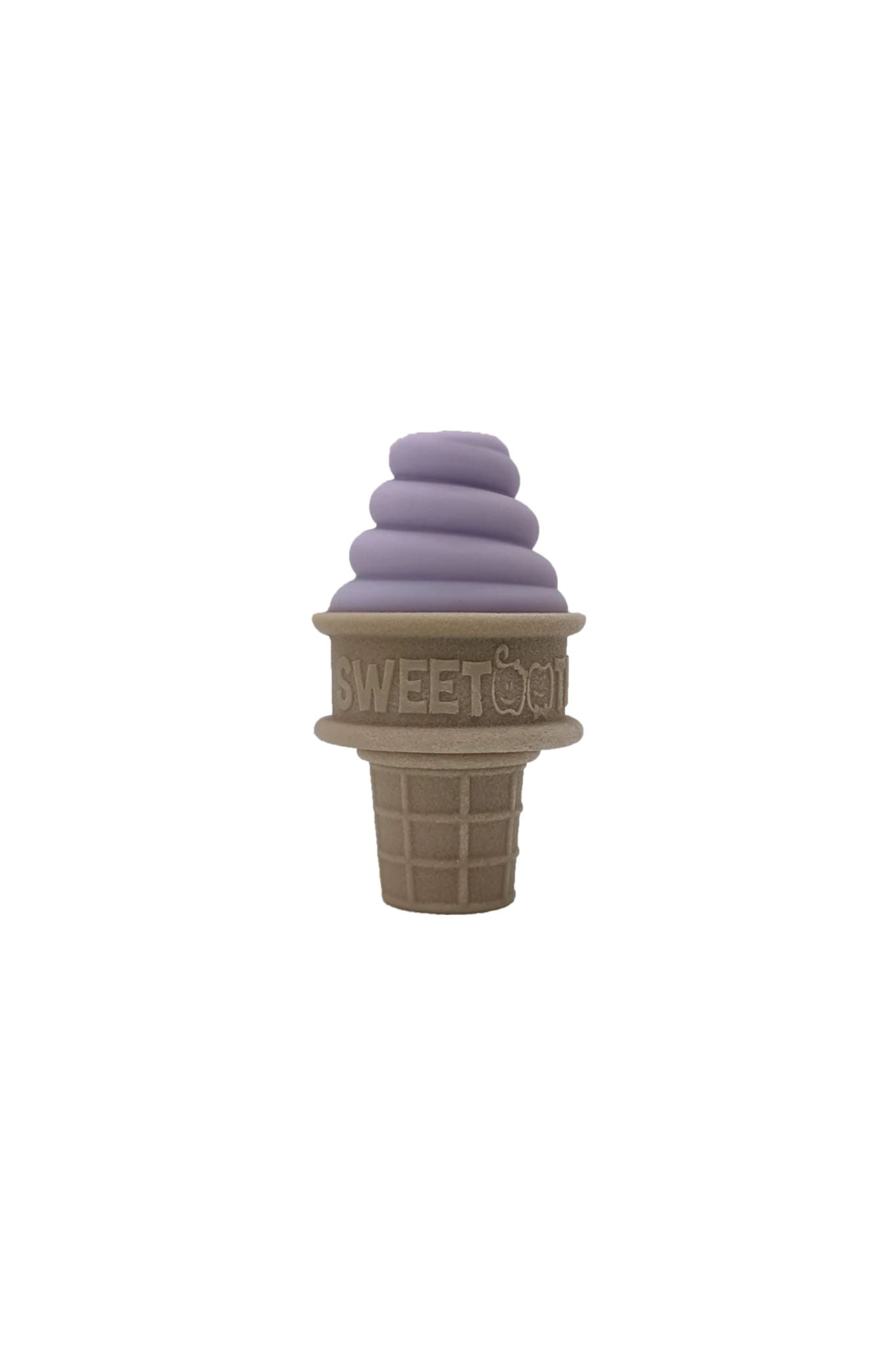 This dreamy ice cream cone is sure to soothe your little one during teething! It features a sweet scent, lilac "ice cream," and the brand name Sweetooth across the front.