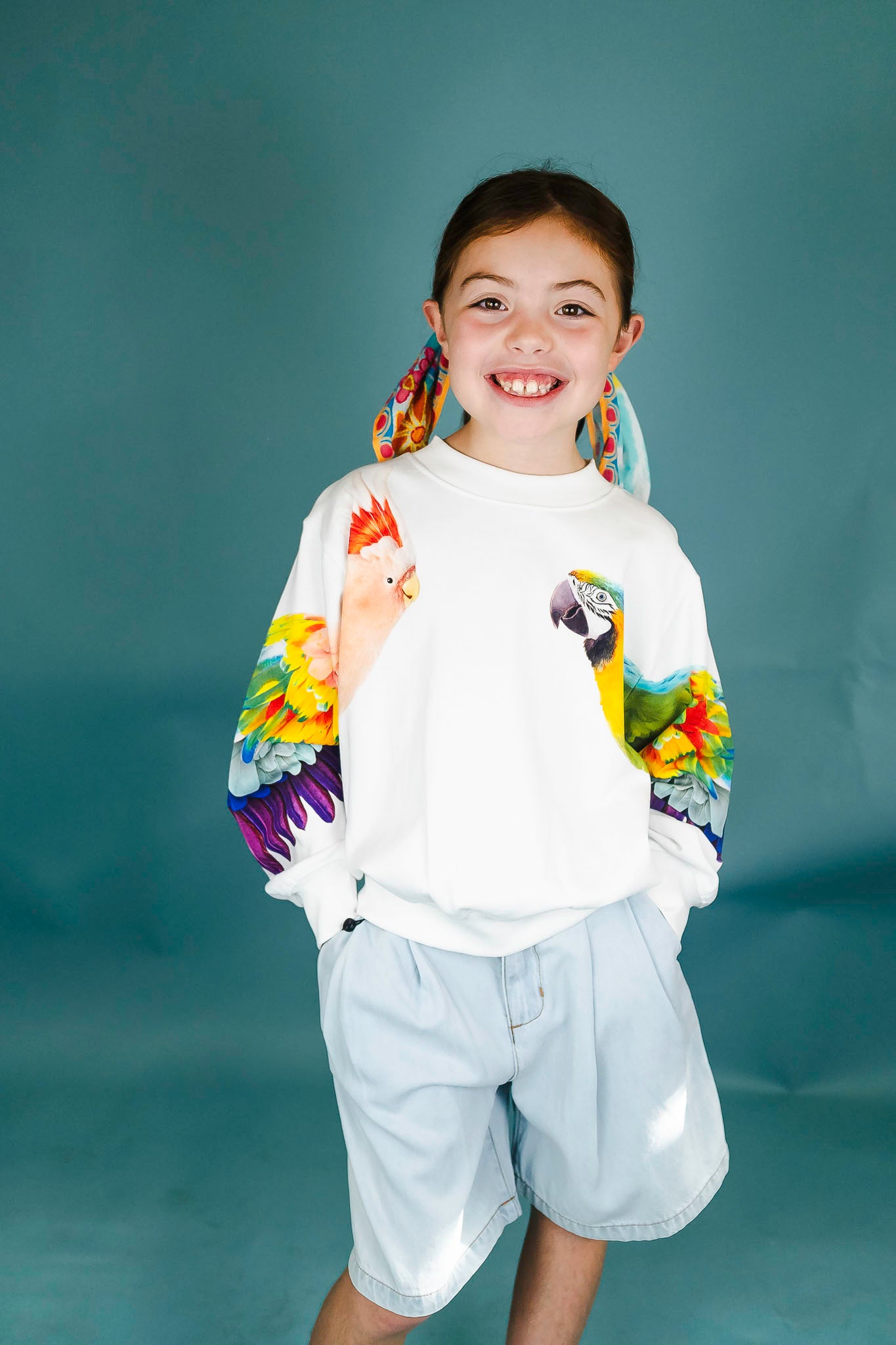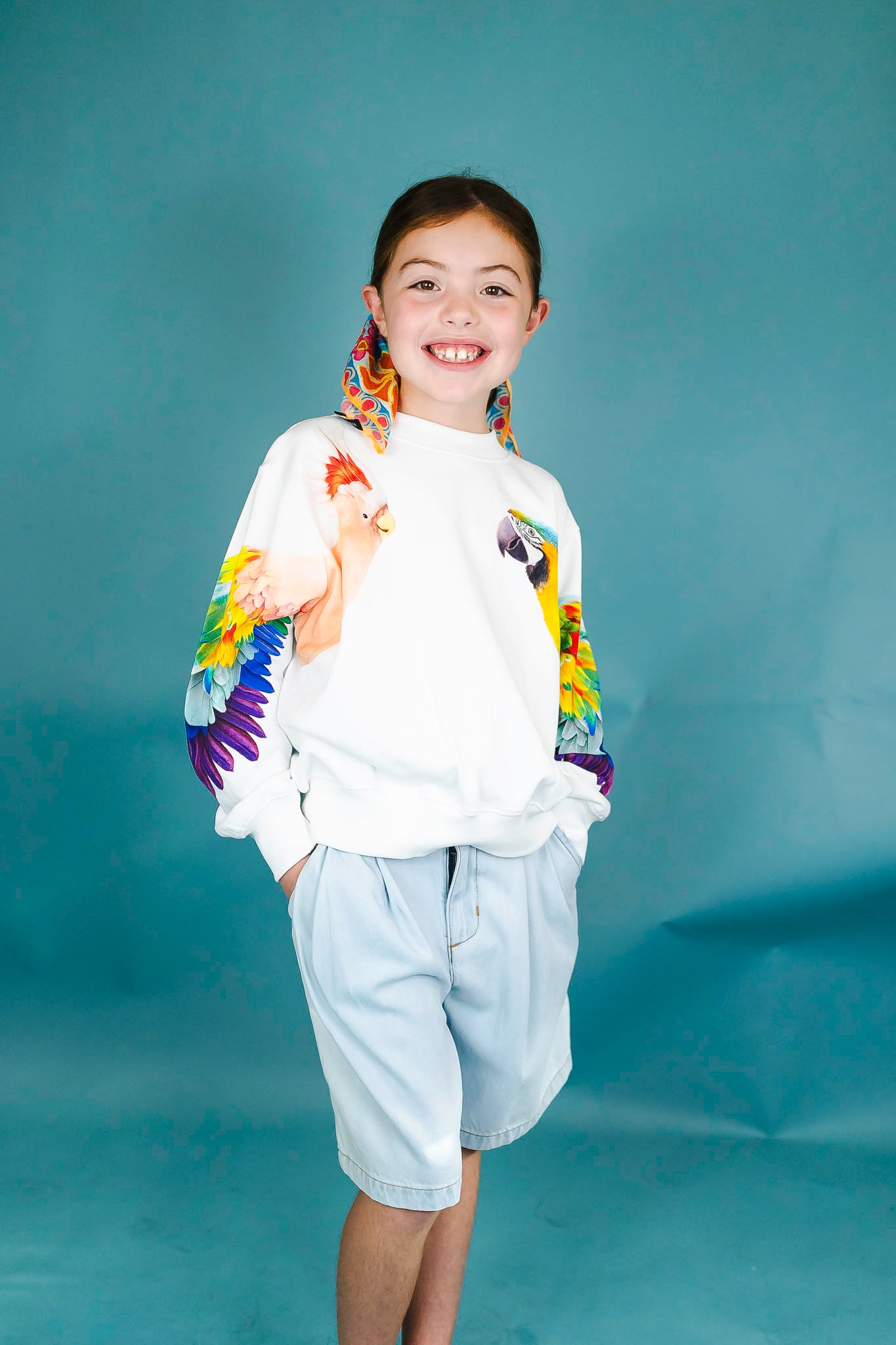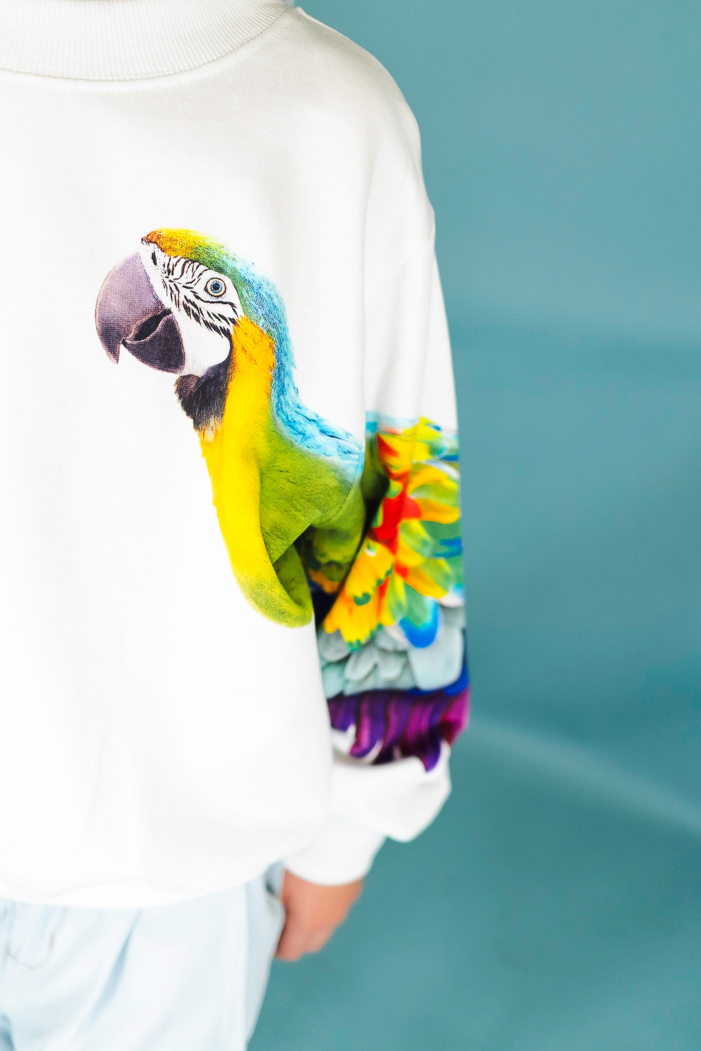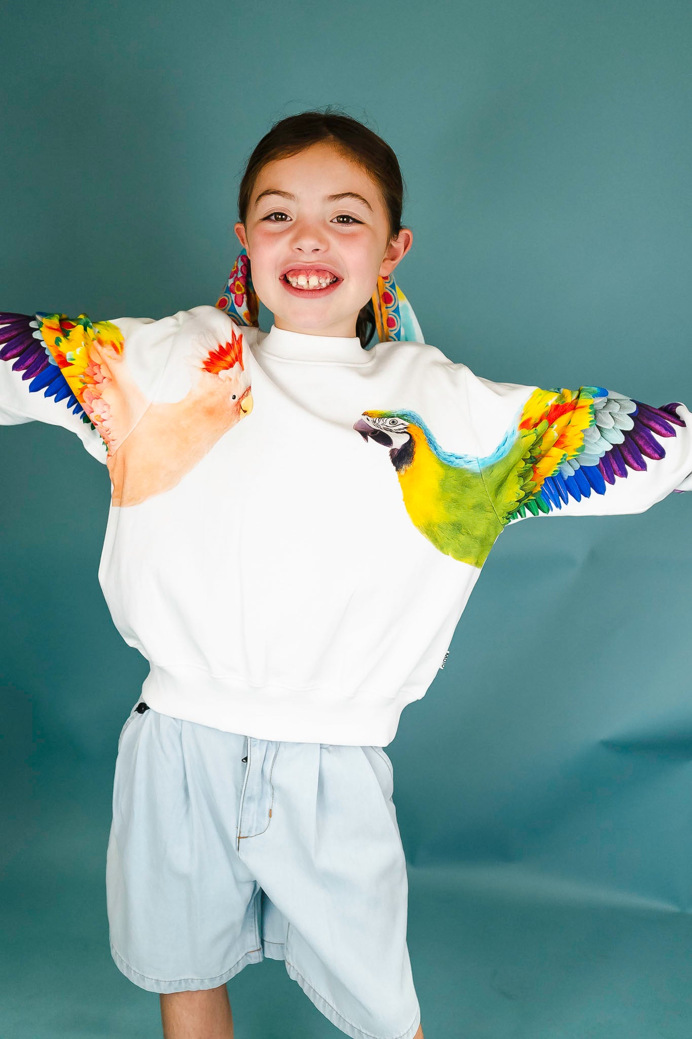 This unique sweatshirt from Molo features a beautiful parrot along each sleeve! Pair it back to some denim shorts for a casual outfit.