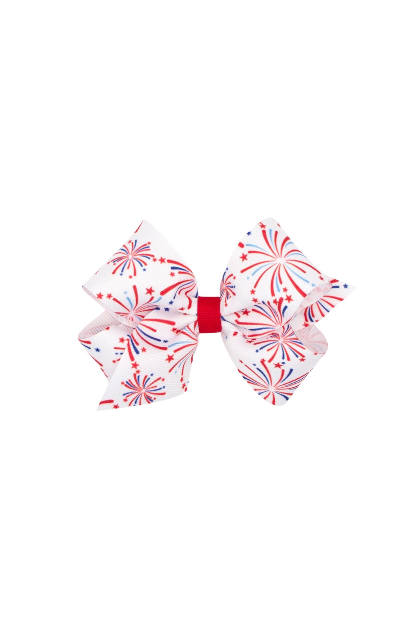 Celebrate America in style with this patriotic Wee Ones medium grosgrain hair bow. With a fun firework print in red, white and blue, it's perfect for star-spangled summer fun! And thanks to the patented WeeStay™ no-slip hair clip, this bow stays securely in place all day long without any fuss.