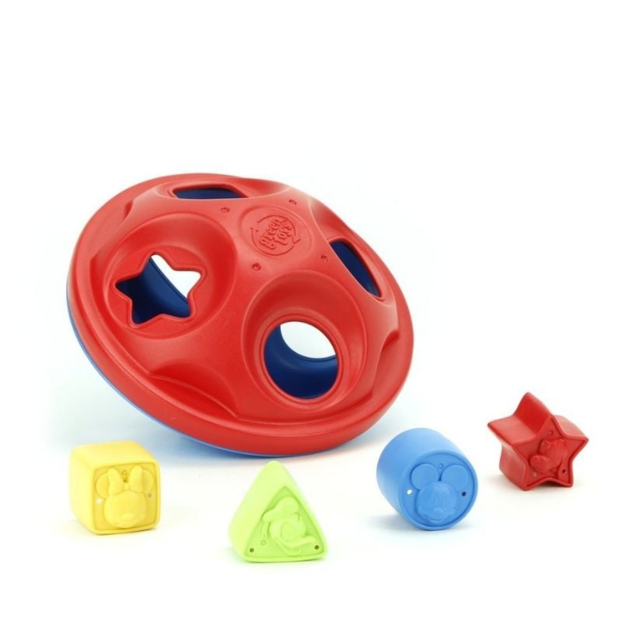 Sort some shapes with Mickey Mouse and Friends! This eco-friendly Green Toys playset includes a circular shape sorter and four different shapes.
