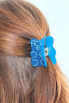 Make a sweet statement with this Mini Blue Gummy Bear Hair Claw! Made from eco-friendly cellulose acetate, this 2" x 1" claw offers a plant-based alternative to plastic. Each unique claw features delightful color variations, adding a playful pop to any look. An original Jenny Lemons design, it’s as charming as it is eco-conscious.