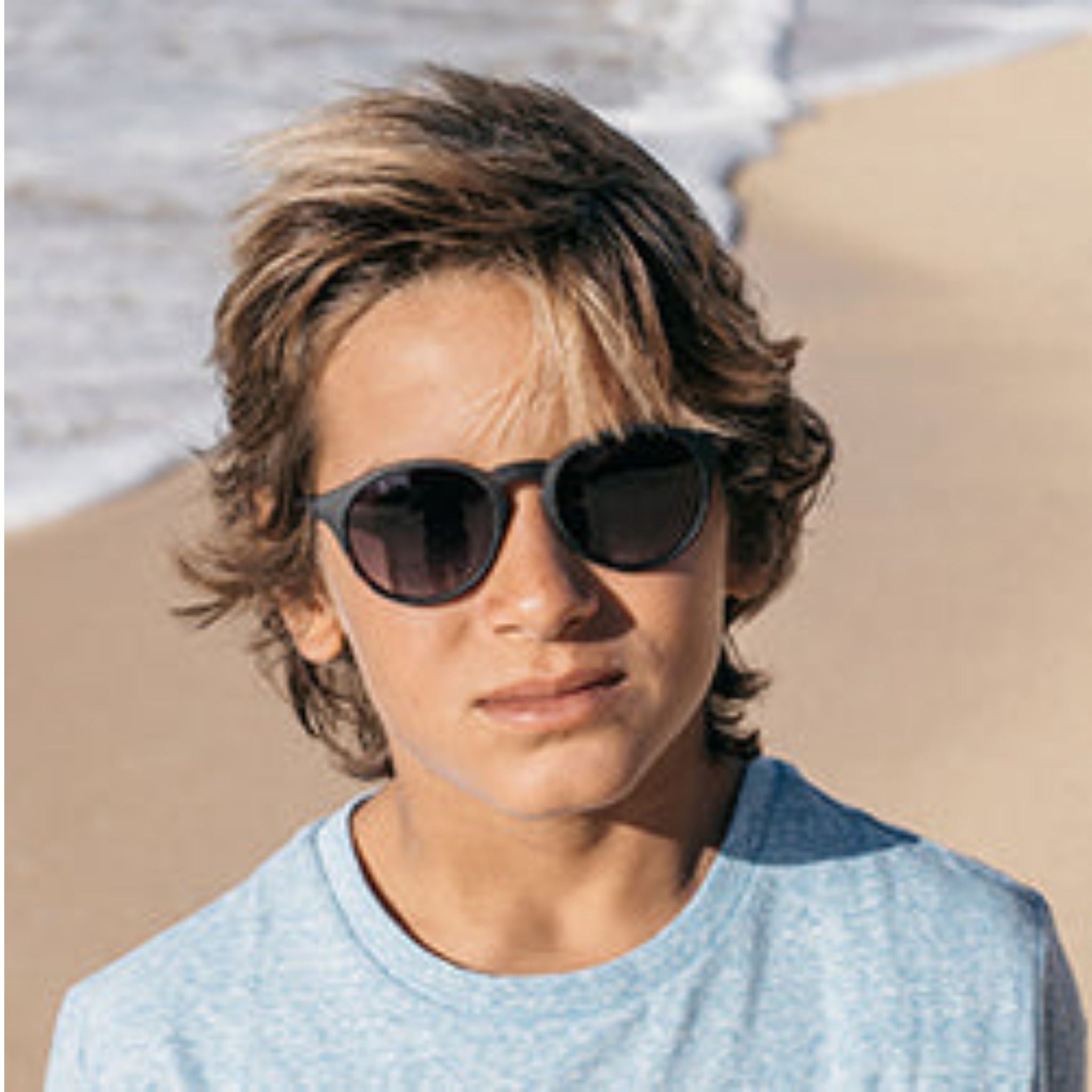 These Sunski sunglasses are cool as can be. They feature tortoise frames and deep blue lenses, helping to keep your child's eyes protected from the sun.