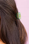 Hello, little green frog! This adorable clip is ready to hop into your accessory collection. Made from eco-friendly cellulose acetate, a plant-based alternative to plastic, this frog claw measures 1.5" long x 1" wide. Each frog claw clip is handmade and hand-painted and boasts unique color variations, making it one-of-a-kind. A charming, playful addition to any look!