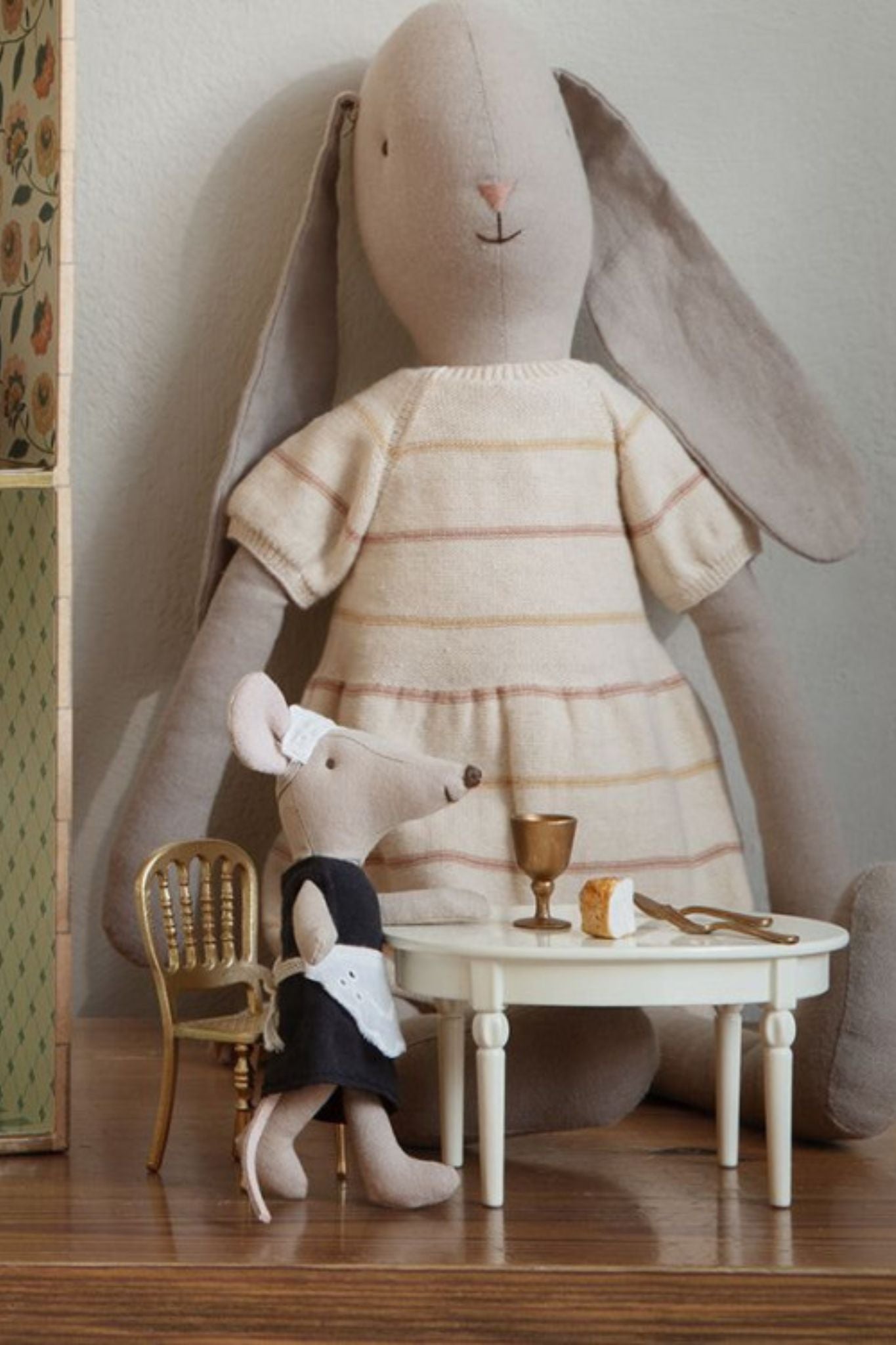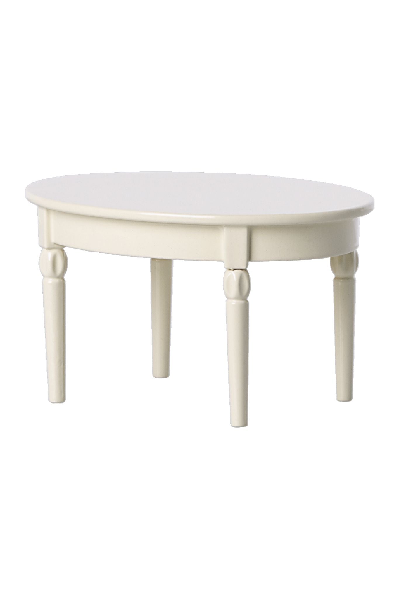 Dinner time! Your little Maileg Mouse needs a place to eat. This off-white table features four legs and comes in an oval shape.