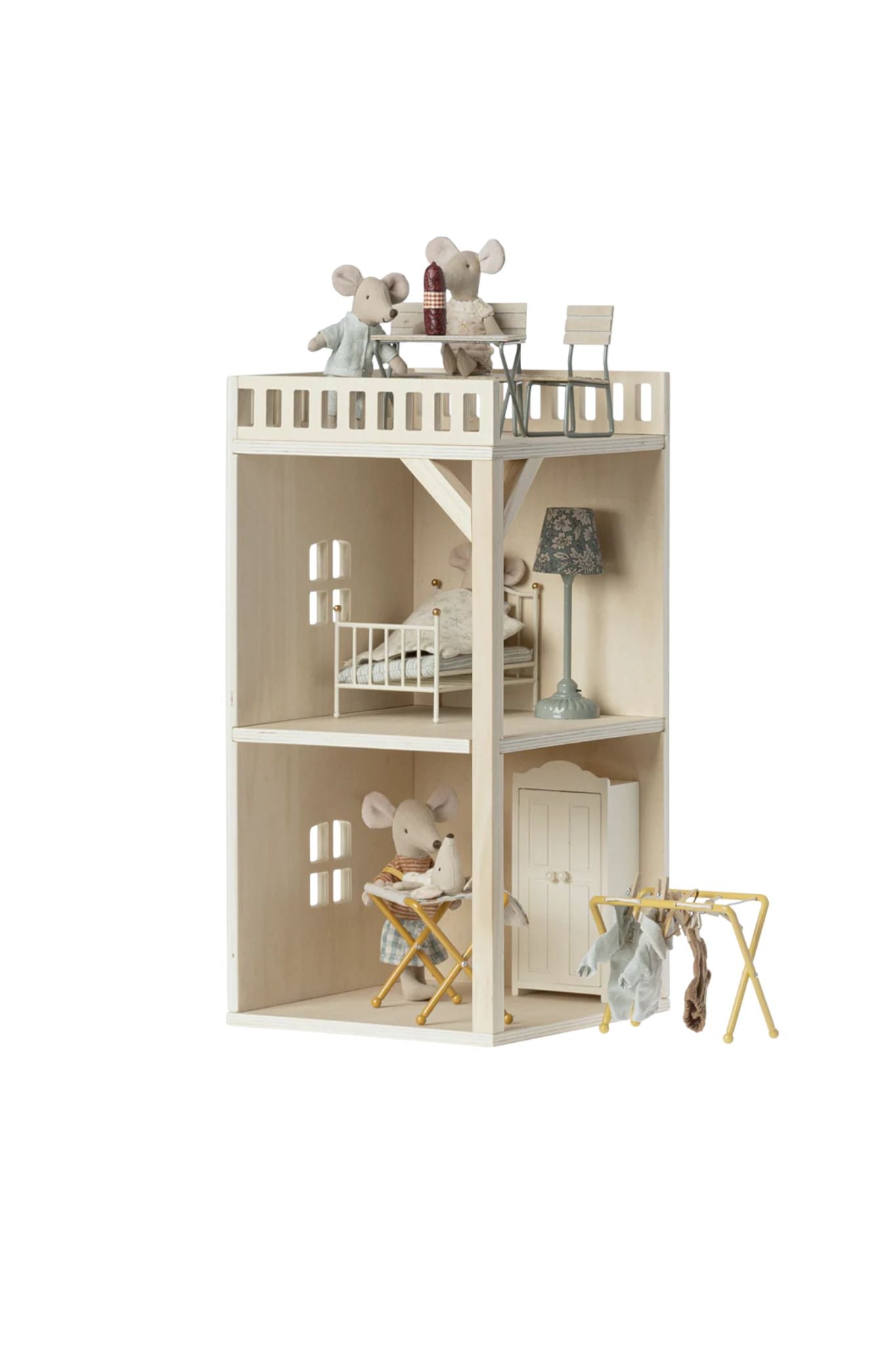 This charming two-floor dollhouse by Maileg is the perfect home for little mice to play and imagine. With spacious rooms and an open rooftop terrace, it’s ready to host everything from lively gatherings under the stars to cozy bedtime routines. Its classic wooden design makes it a timeless setting for storytelling and everyday adventures.