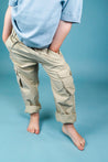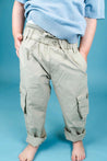 These comfy cargo pants by Mayoral come in a light green hue and feature a drawstring waist. Pockets adorn the hips and legs.