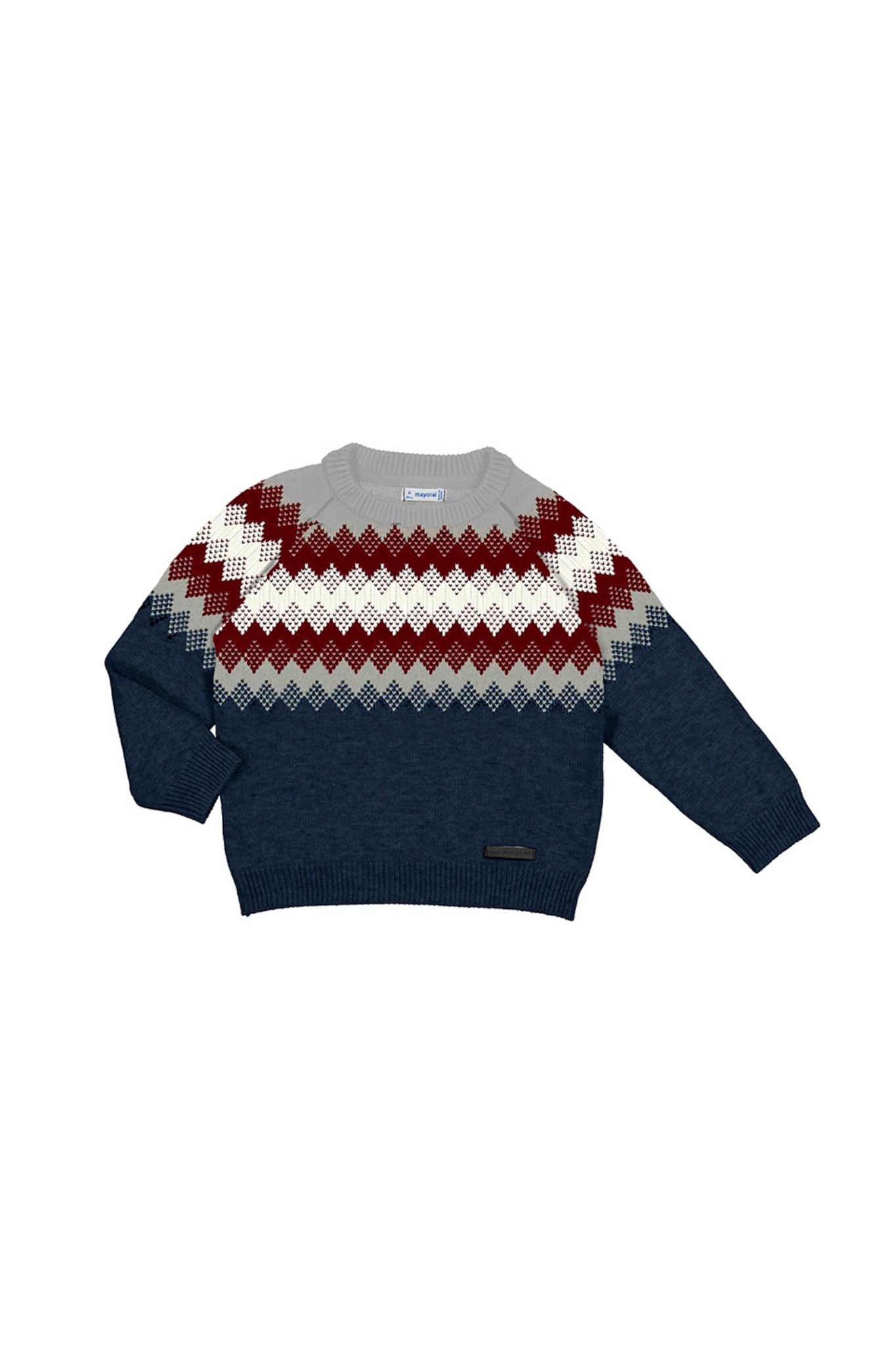 This cozy jumper from Mayoral features a jacquard zig zag pattern and a crew neckline. Add a pair of jeans and sneakers for an everyday outfit.