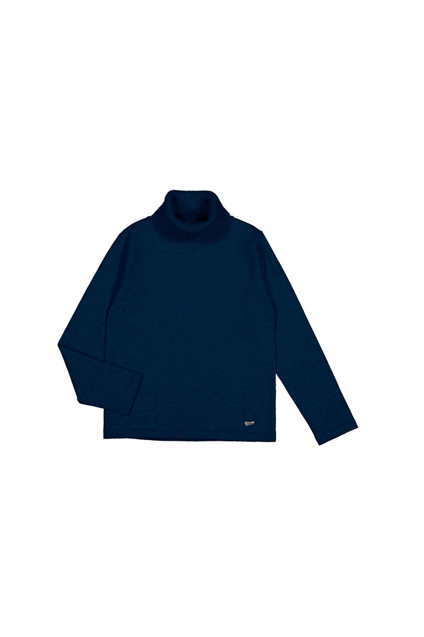 Dress this essential turtleneck from Mayoral up or down! It comes in a navy hue and features a ribbed texture at the neckline. A brand logo adorns the bottom hem.