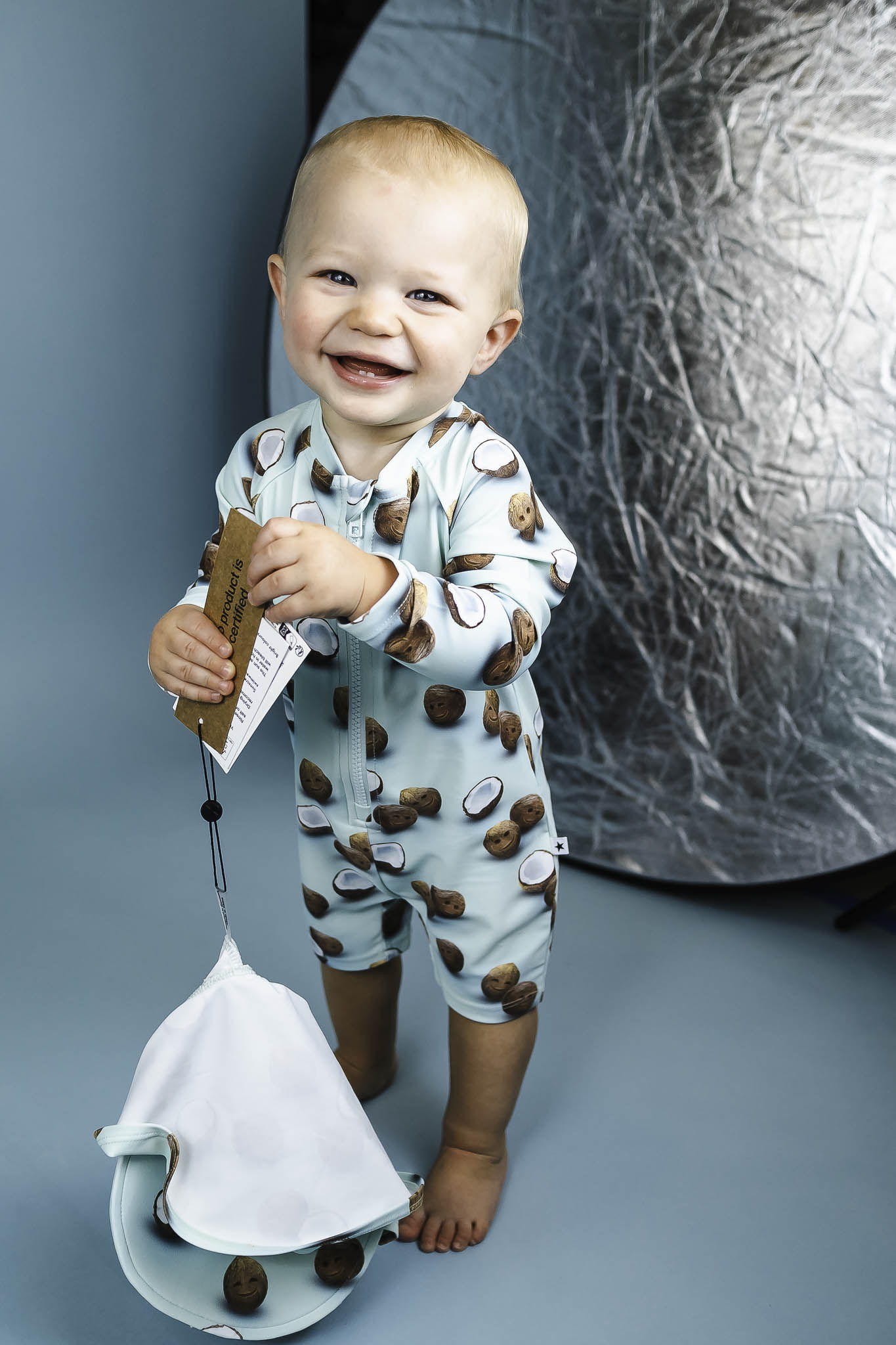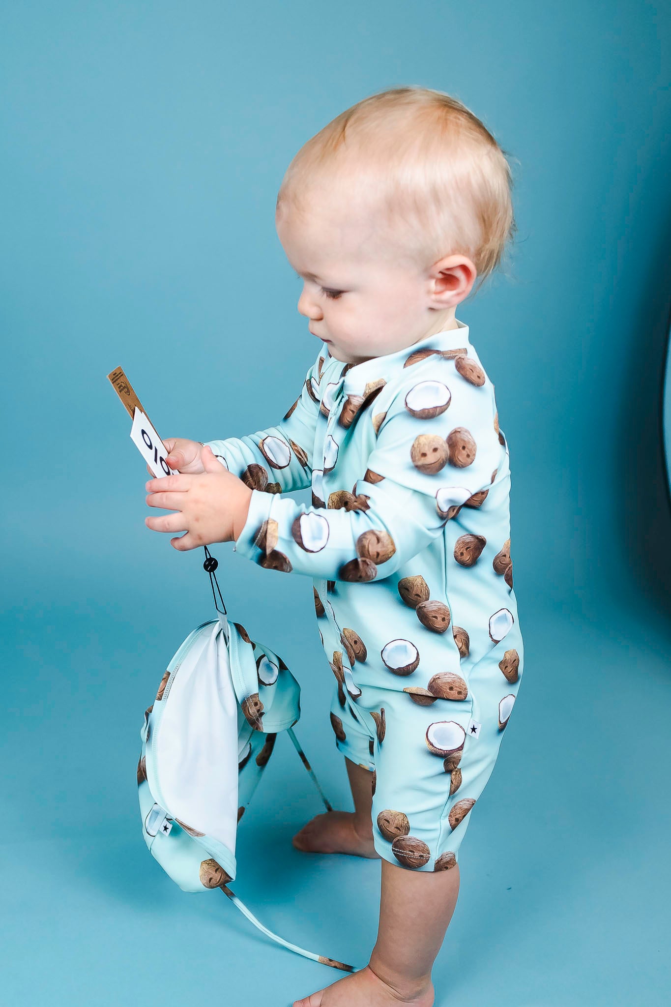 Your little one is ready for summer fun with this adorable swimsuit from Molo! It features long sleeves, an allover coconut print, and a center front zipper closure.