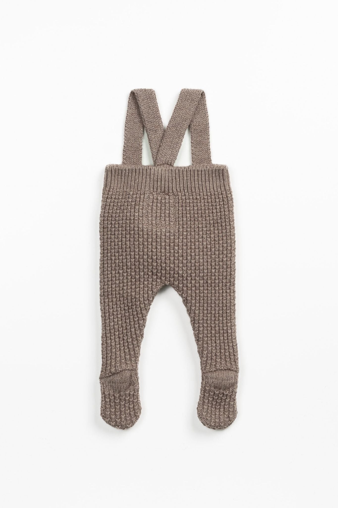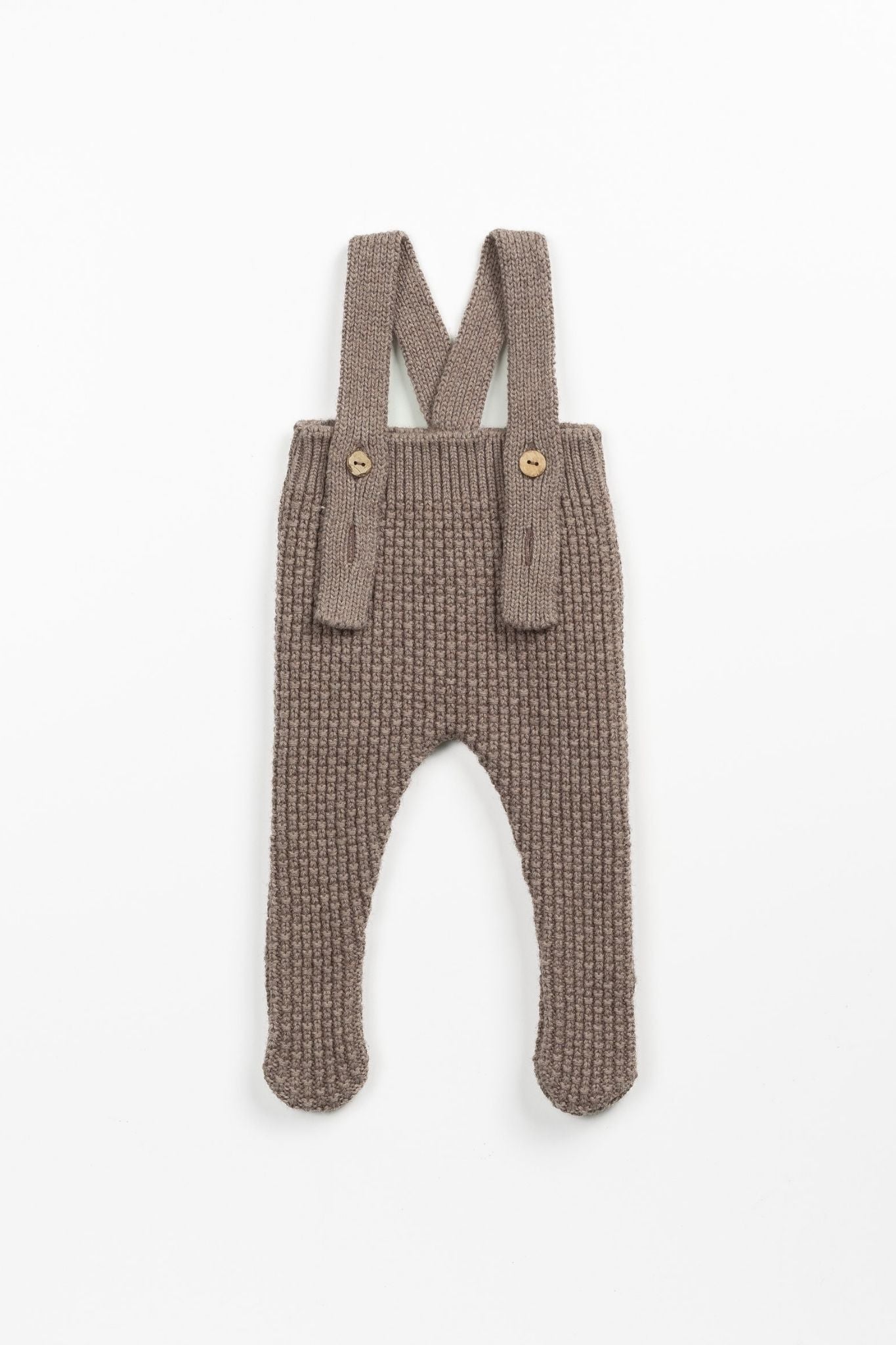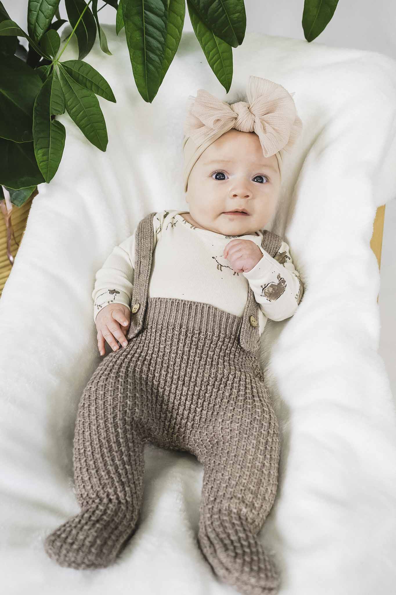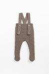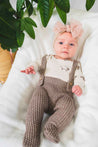 This super comfy jumpsuit by Play Up comes in a neutral tone and features knitted footie pants. Button tab closure on the overalls allows for an adjustable fit. Layer a tee or bodysuit beneath for a sweet outfit.