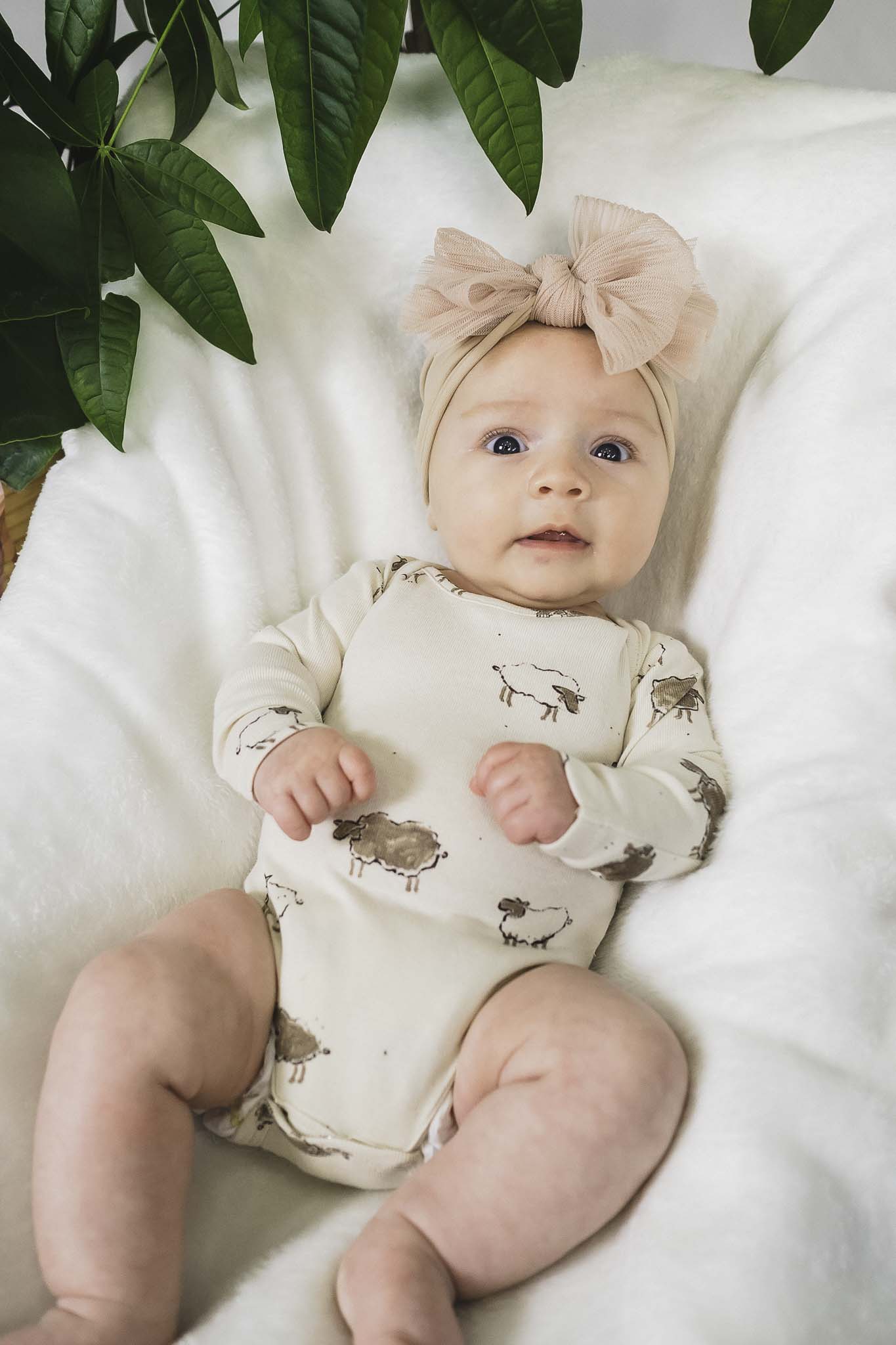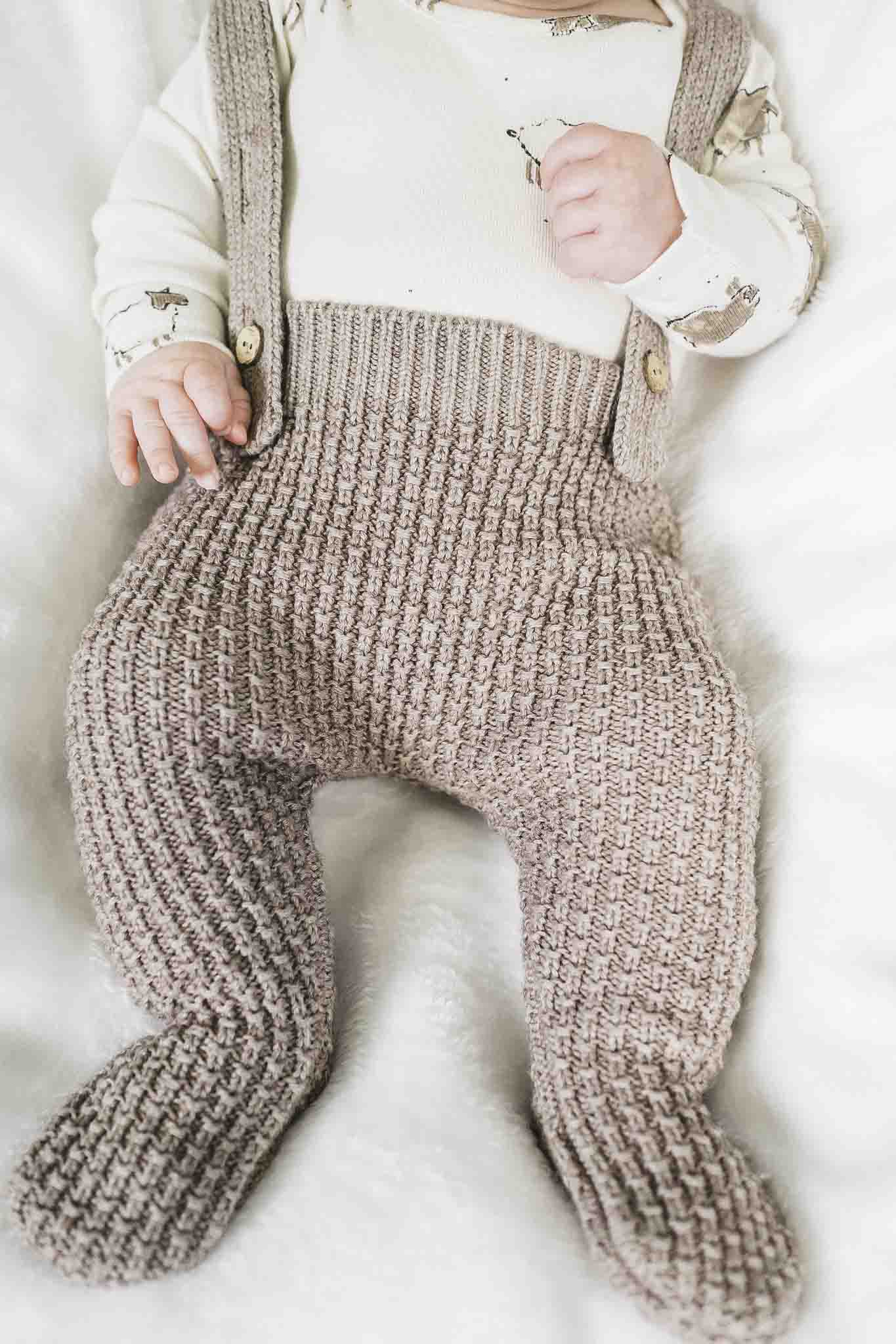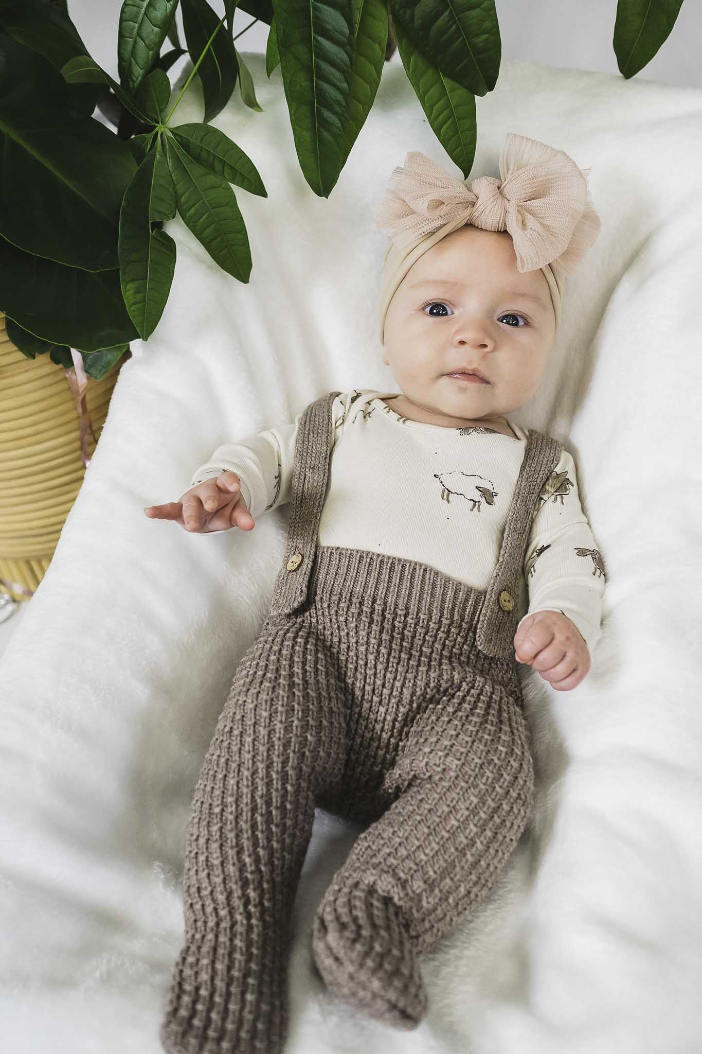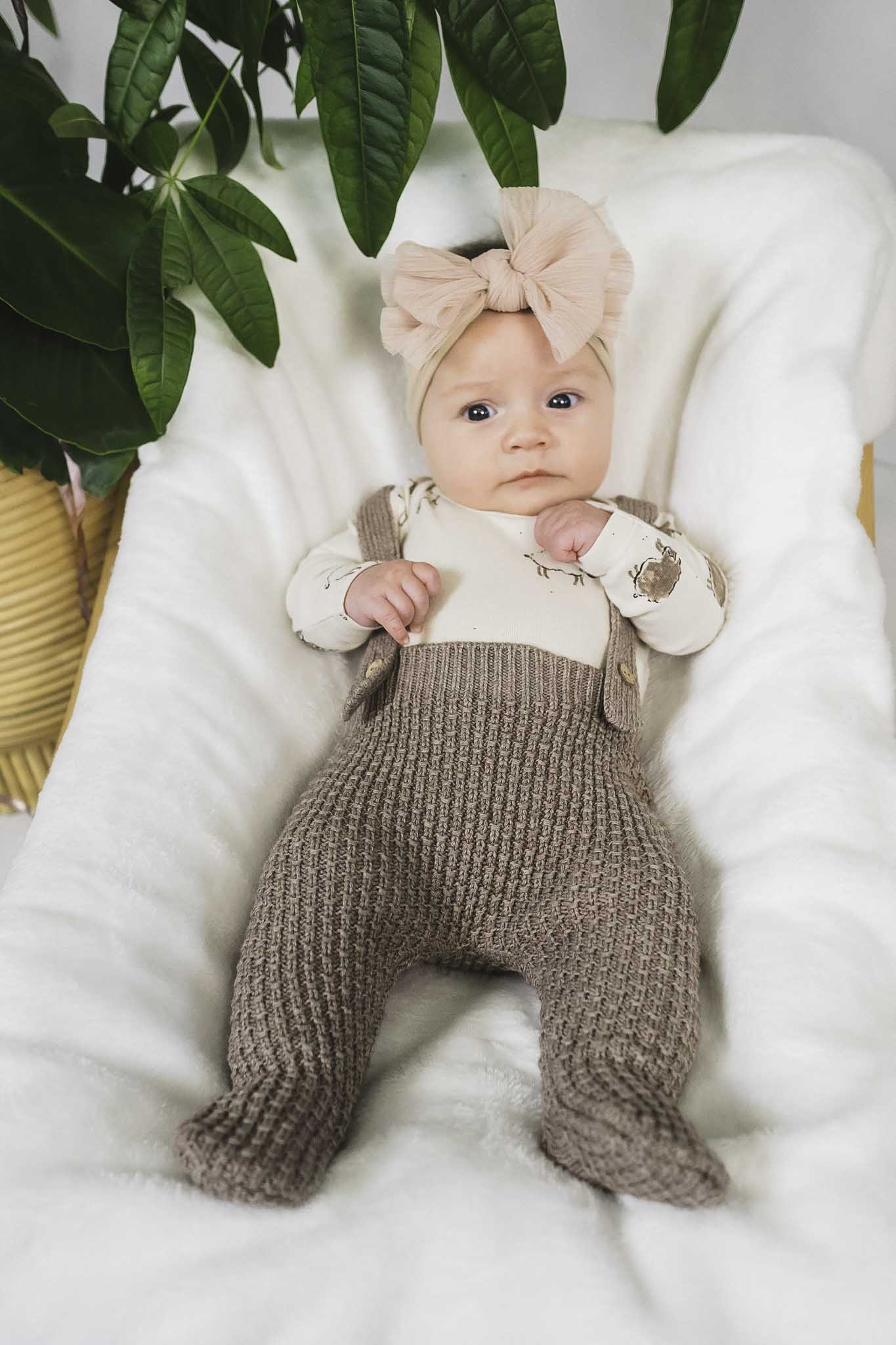 This super comfy jumpsuit by Play Up comes in a neutral tone and features knitted footie pants. Button tab closure on the overalls allows for an adjustable fit. Layer a tee or bodysuit beneath for a sweet outfit.