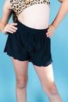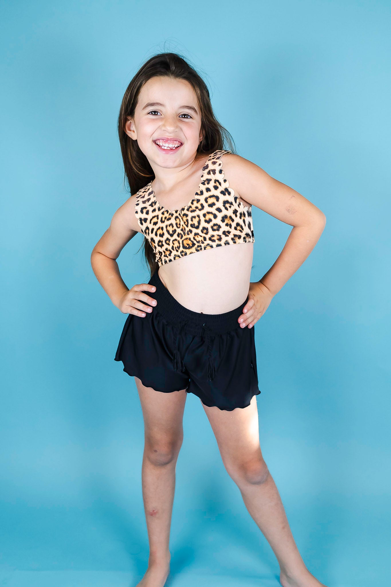These modest swim shorts from Molo are easy to match and comfy to wear! They come in black and feature frilly hem. The elastic waist has a rope drawstring.