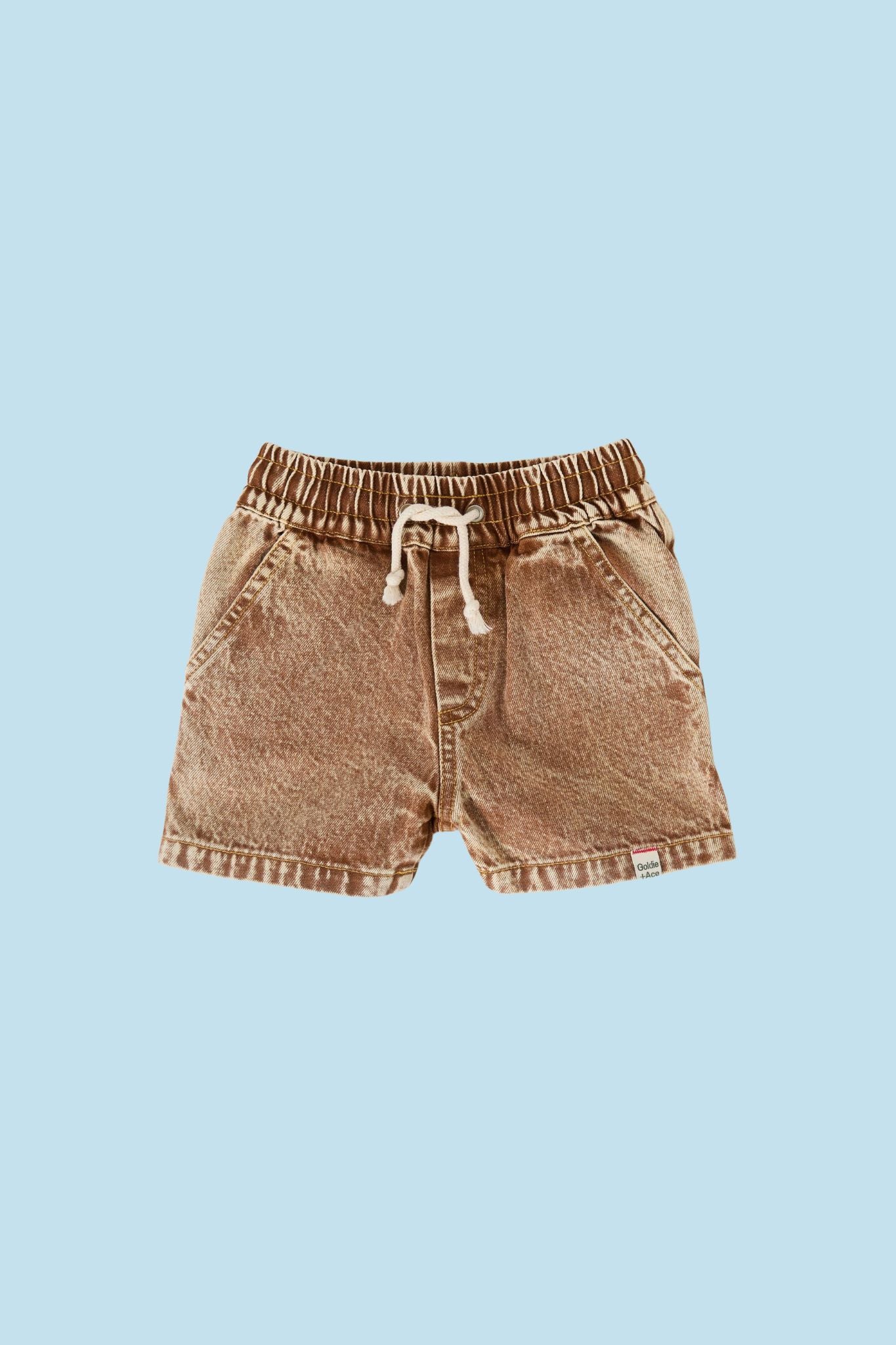 These brown denim shorts from Goldie + Ace are a must-have summer staple! They feature a drawstring waist, side pockets, and a washed effect.