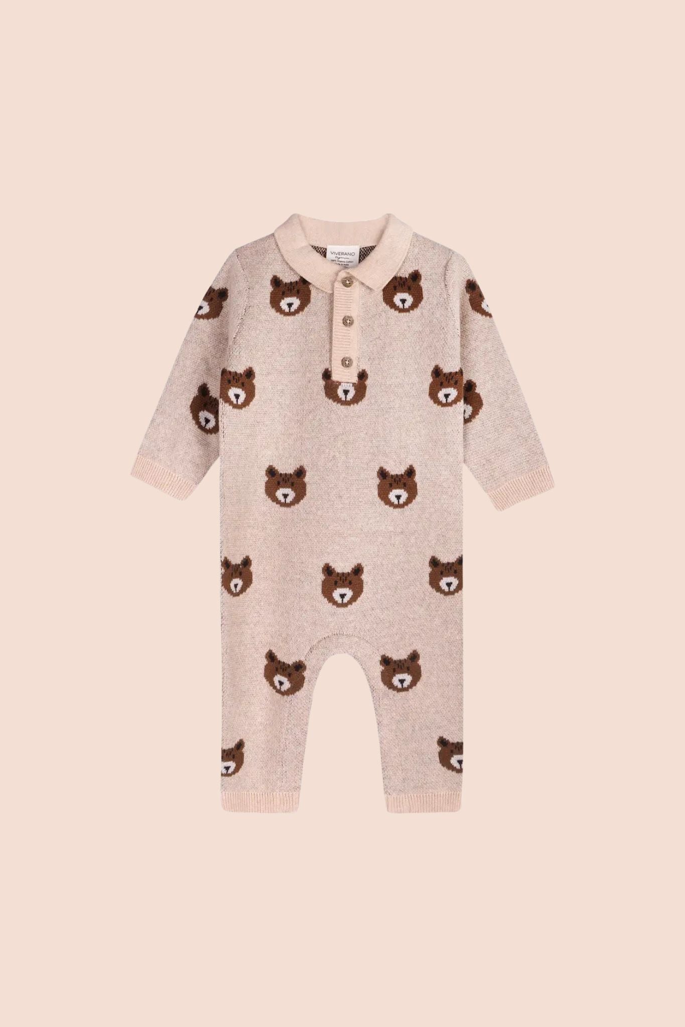 Oatmeal Knit Bear Collar Romper (Baby Boy)