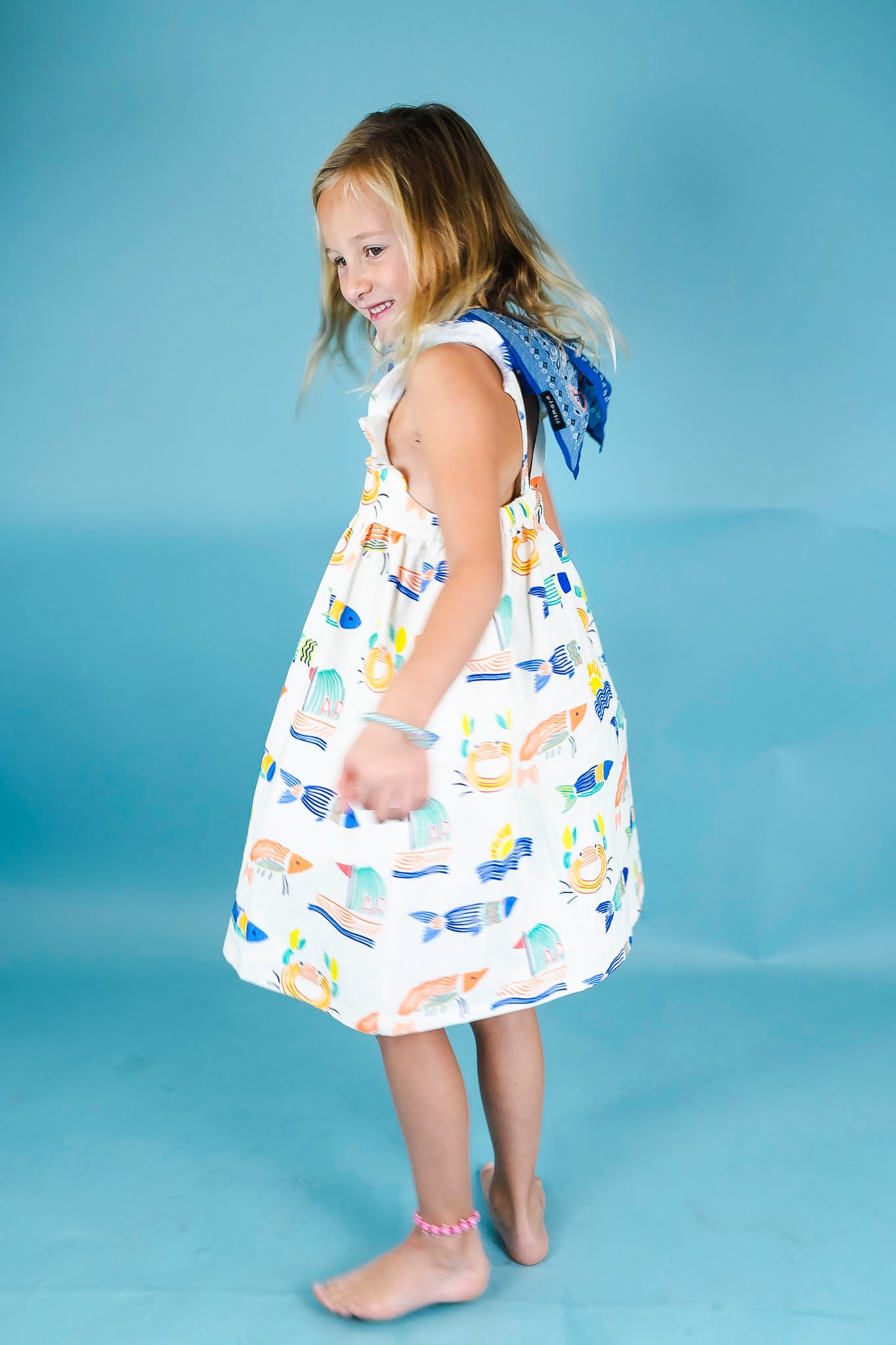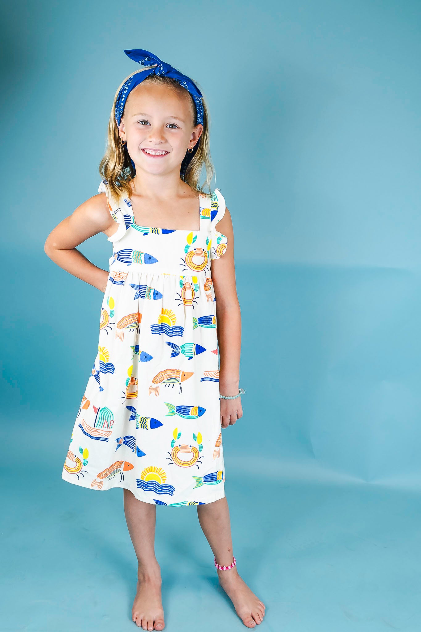 This vibrant dress from Arsene has your little girl vacay-ready! It features a multicolored ocean animal print and flutter straps.
