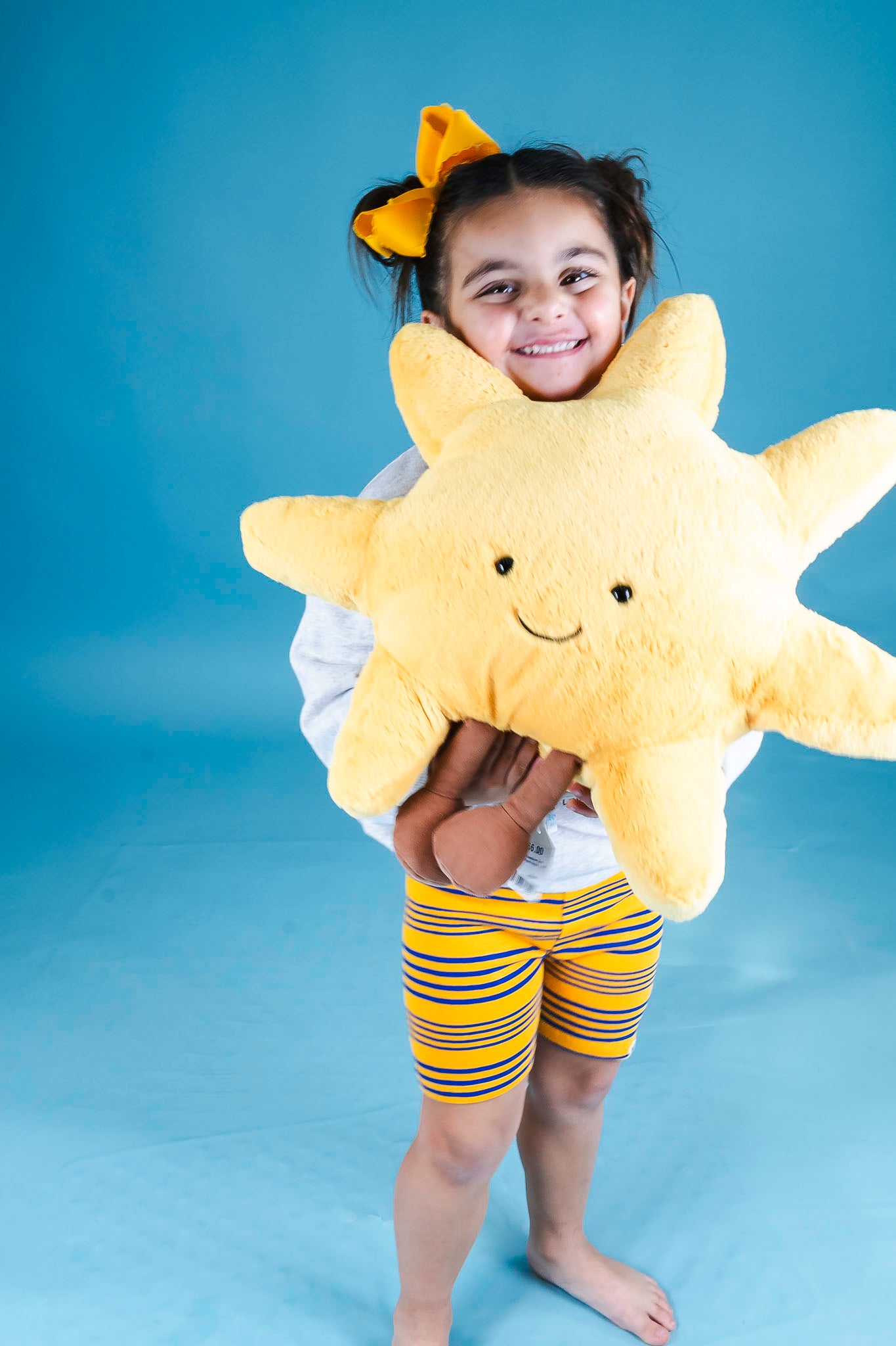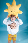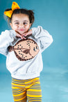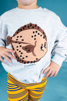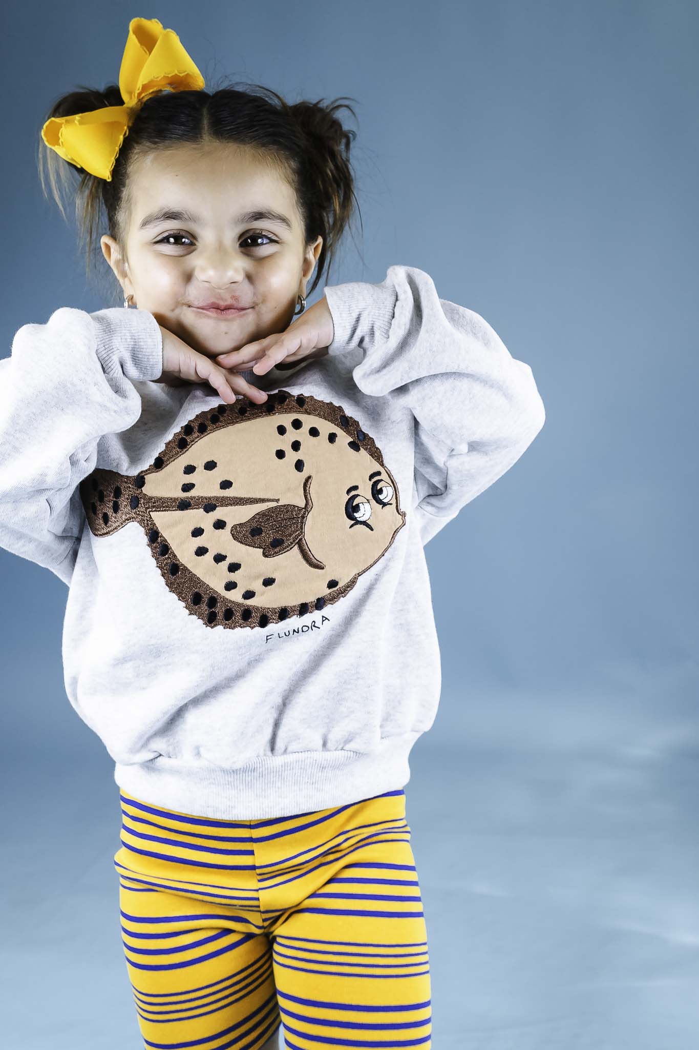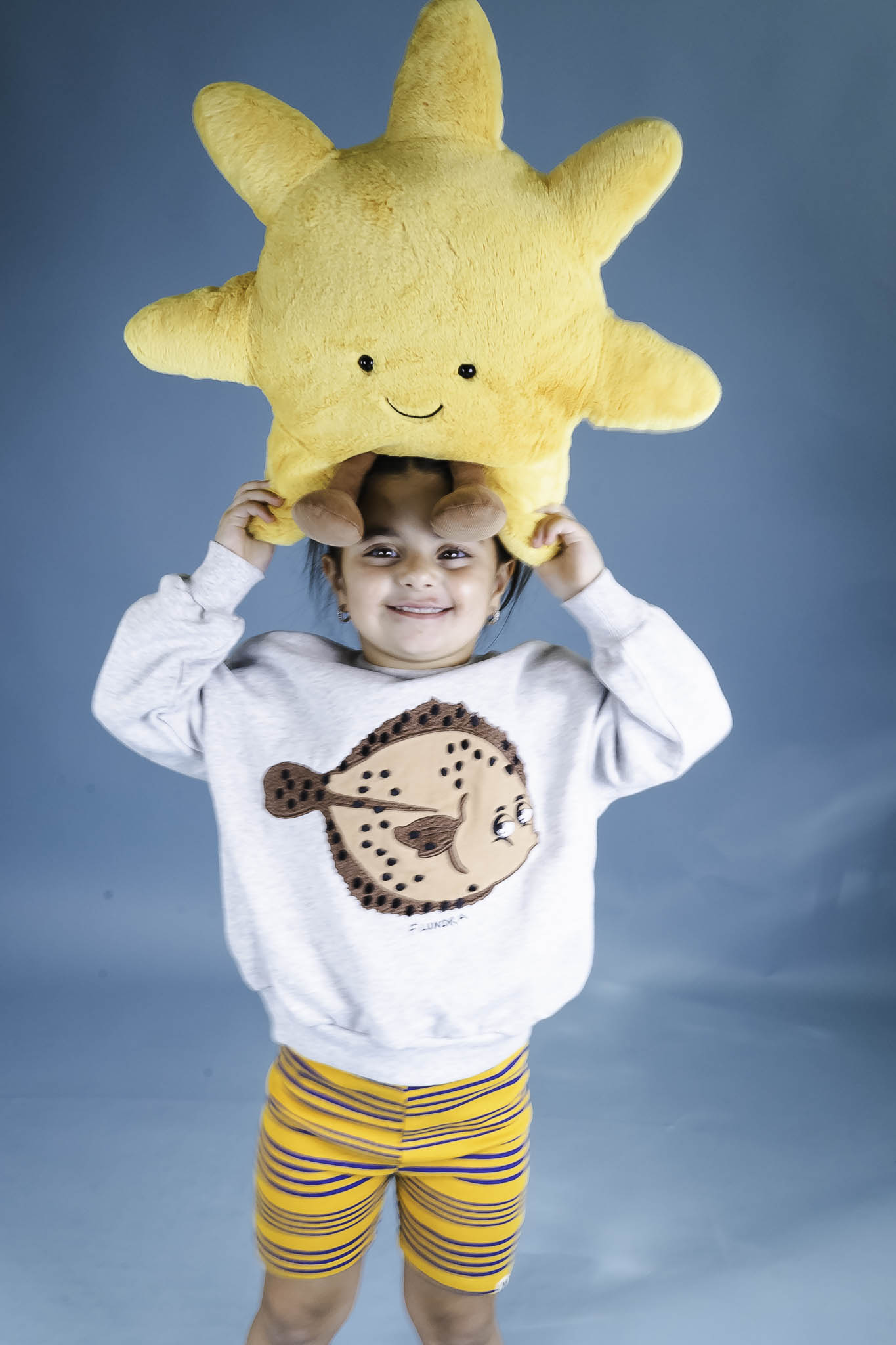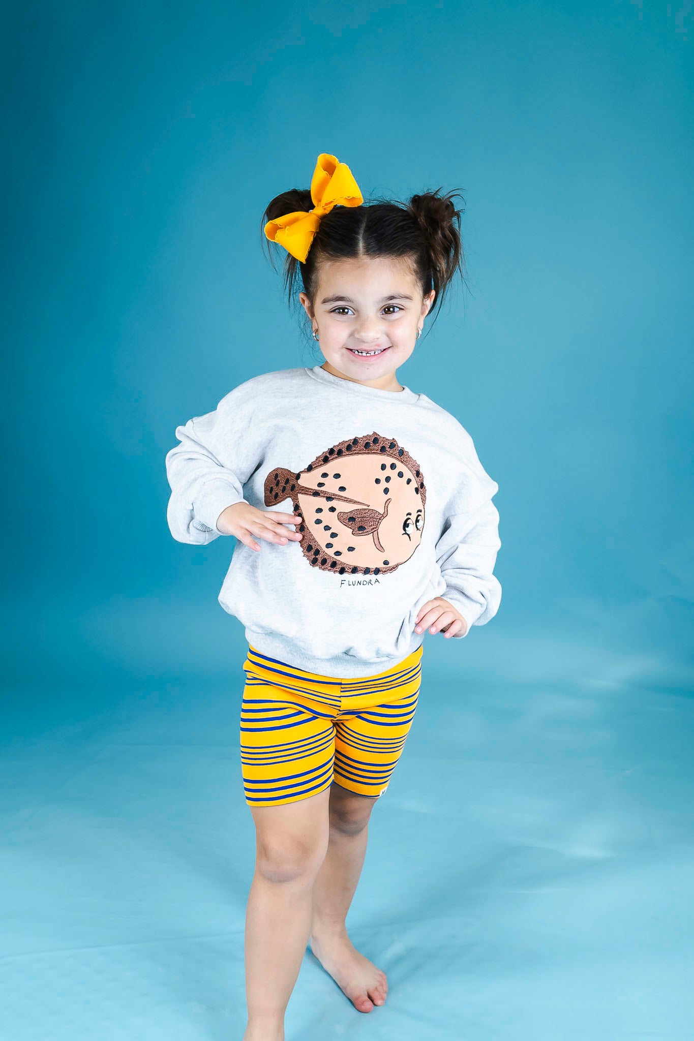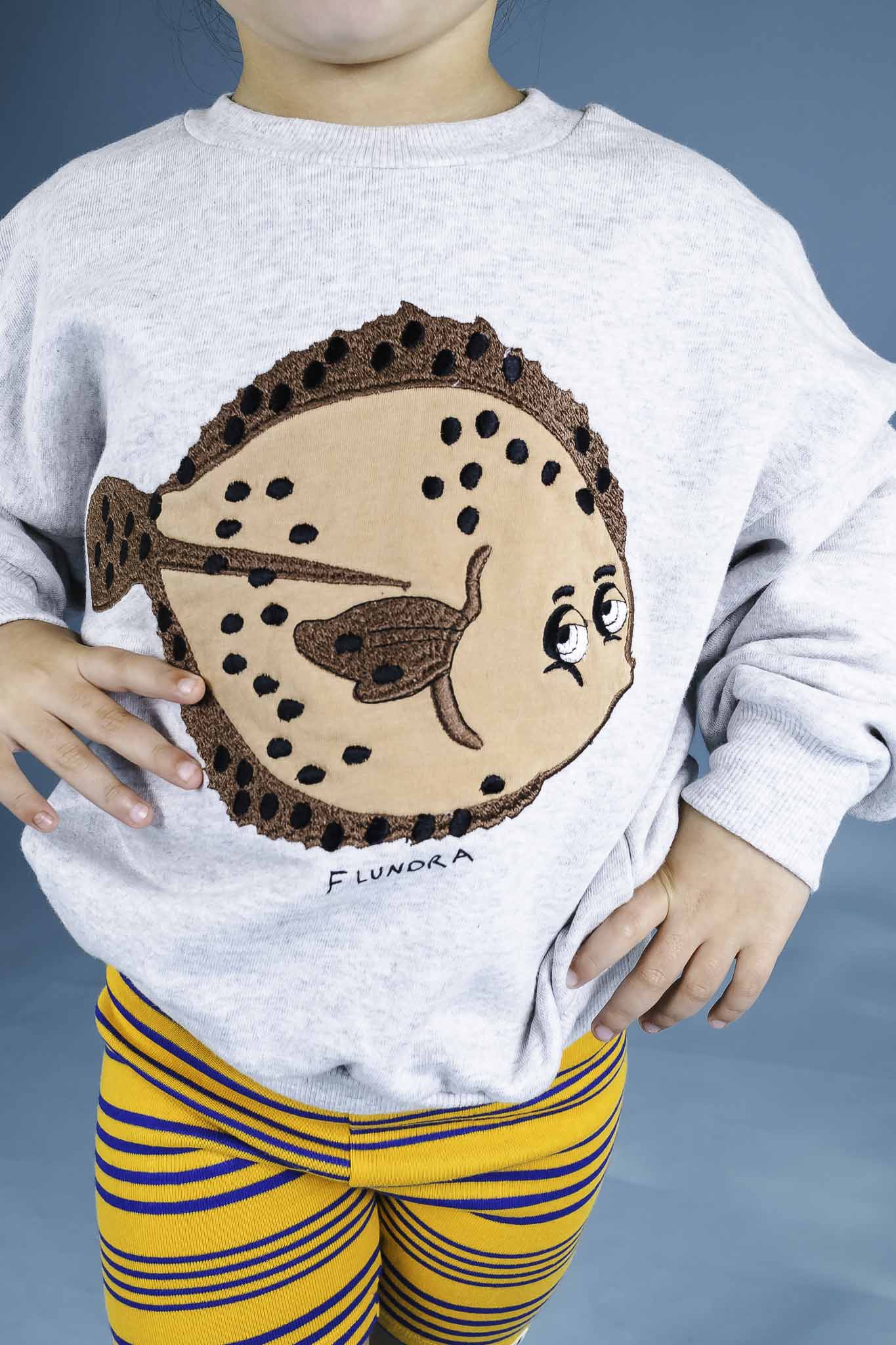 This Mini Rodini pullover comes in a light blue hue and features a large, embroidered flounder at the front. Add a pair of bike shorts and sneakers for a comfy outfit!