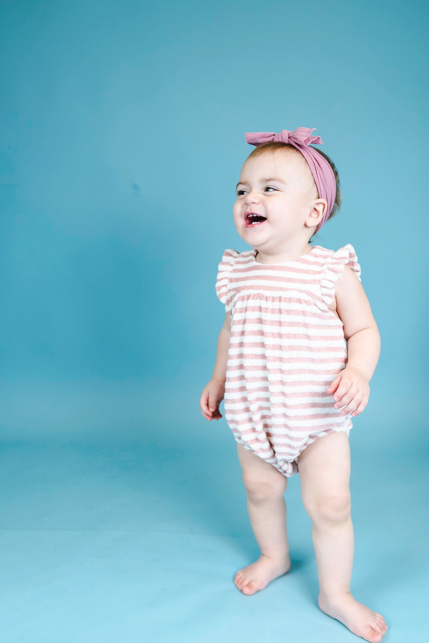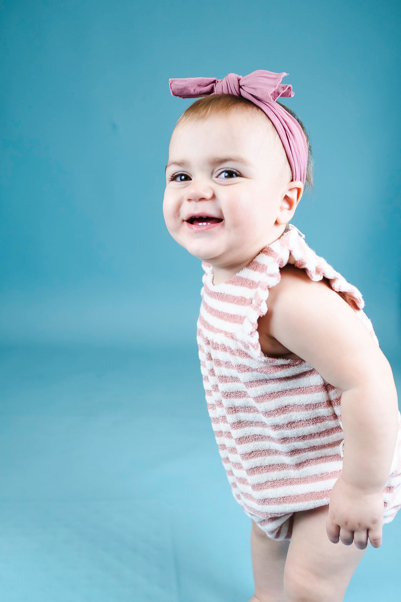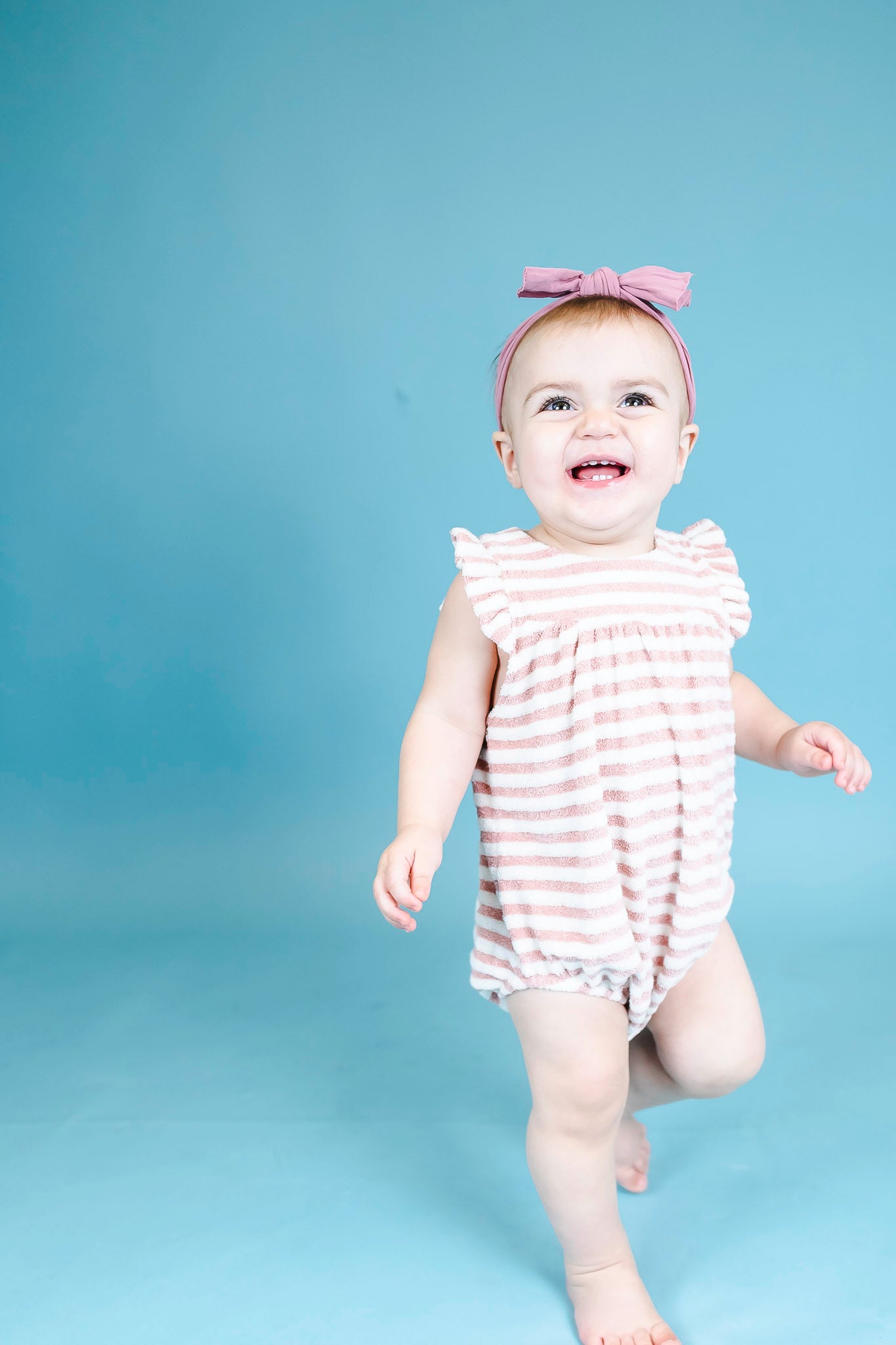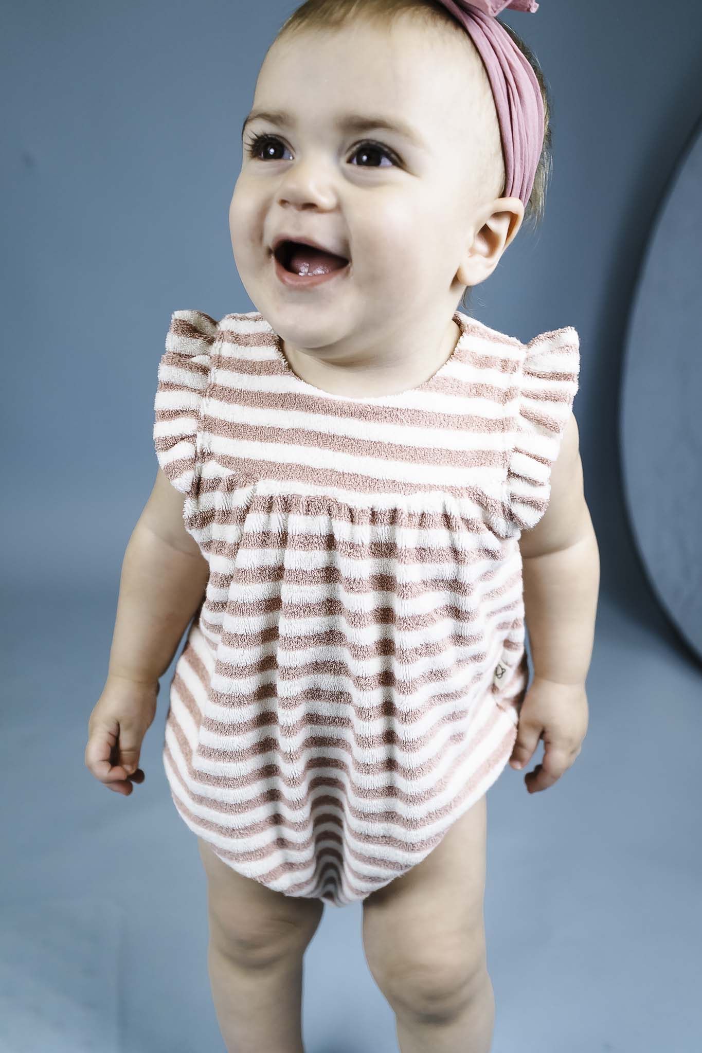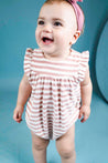 Organic Striped Toweling Rose Romper (Baby Girl)