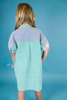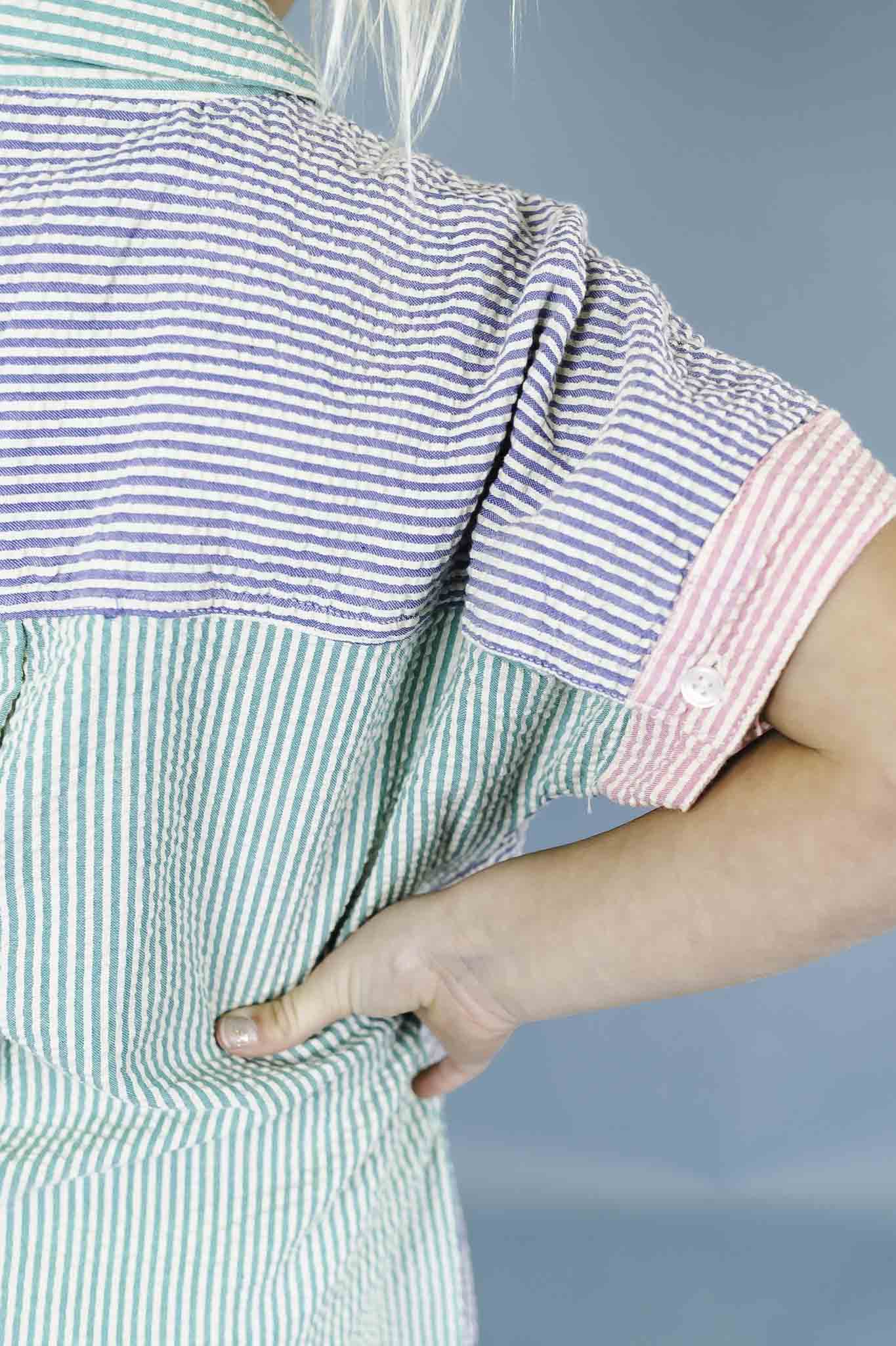 This fun dress from Arsene features multicolored stripes throughout, a collar, and a contrast pocket at the chest. Add a pair of sneakers for a cute, everyday outfit.