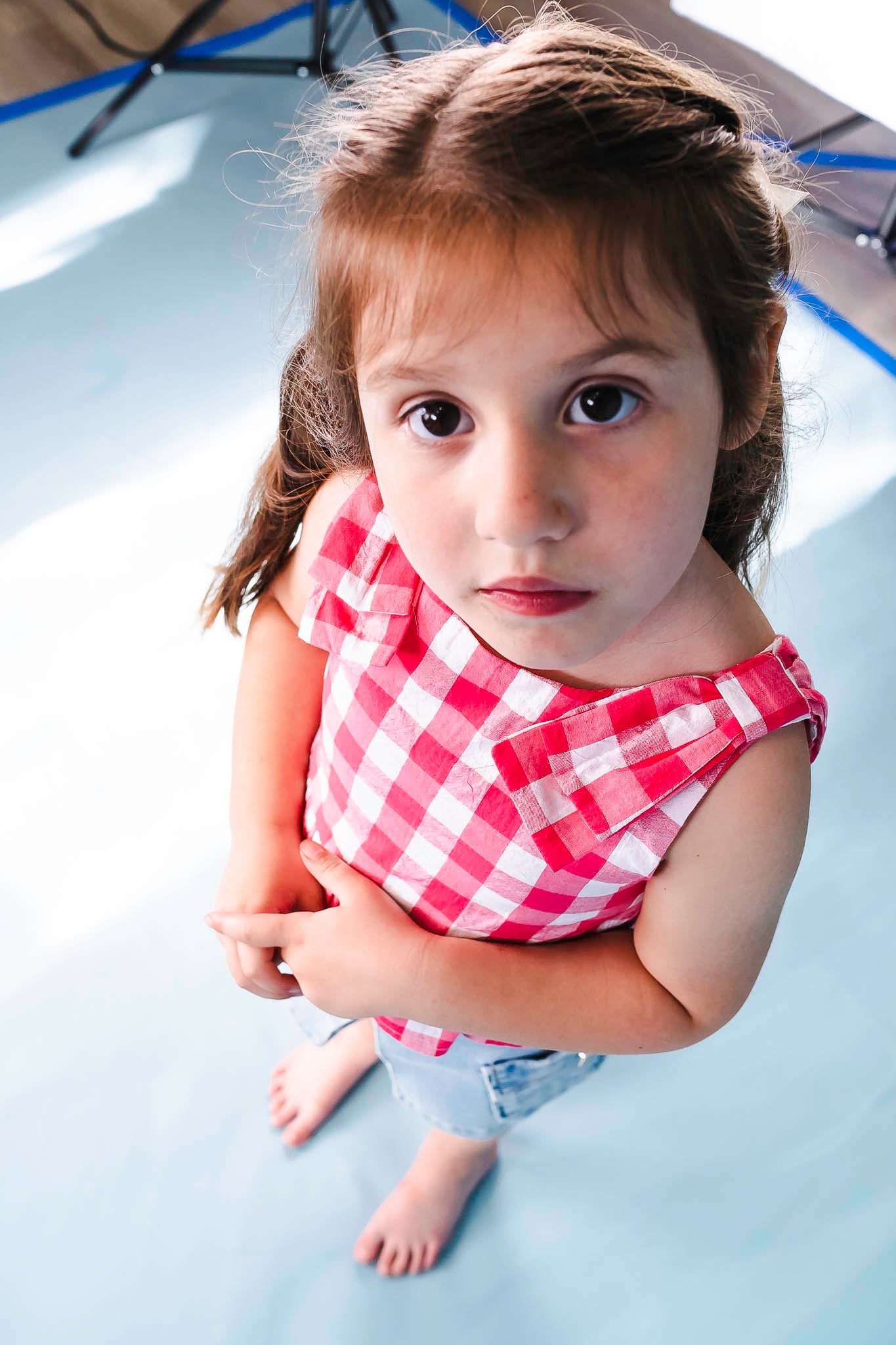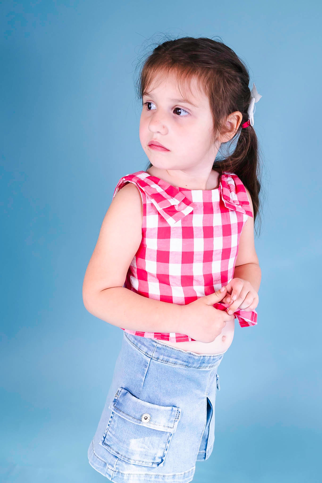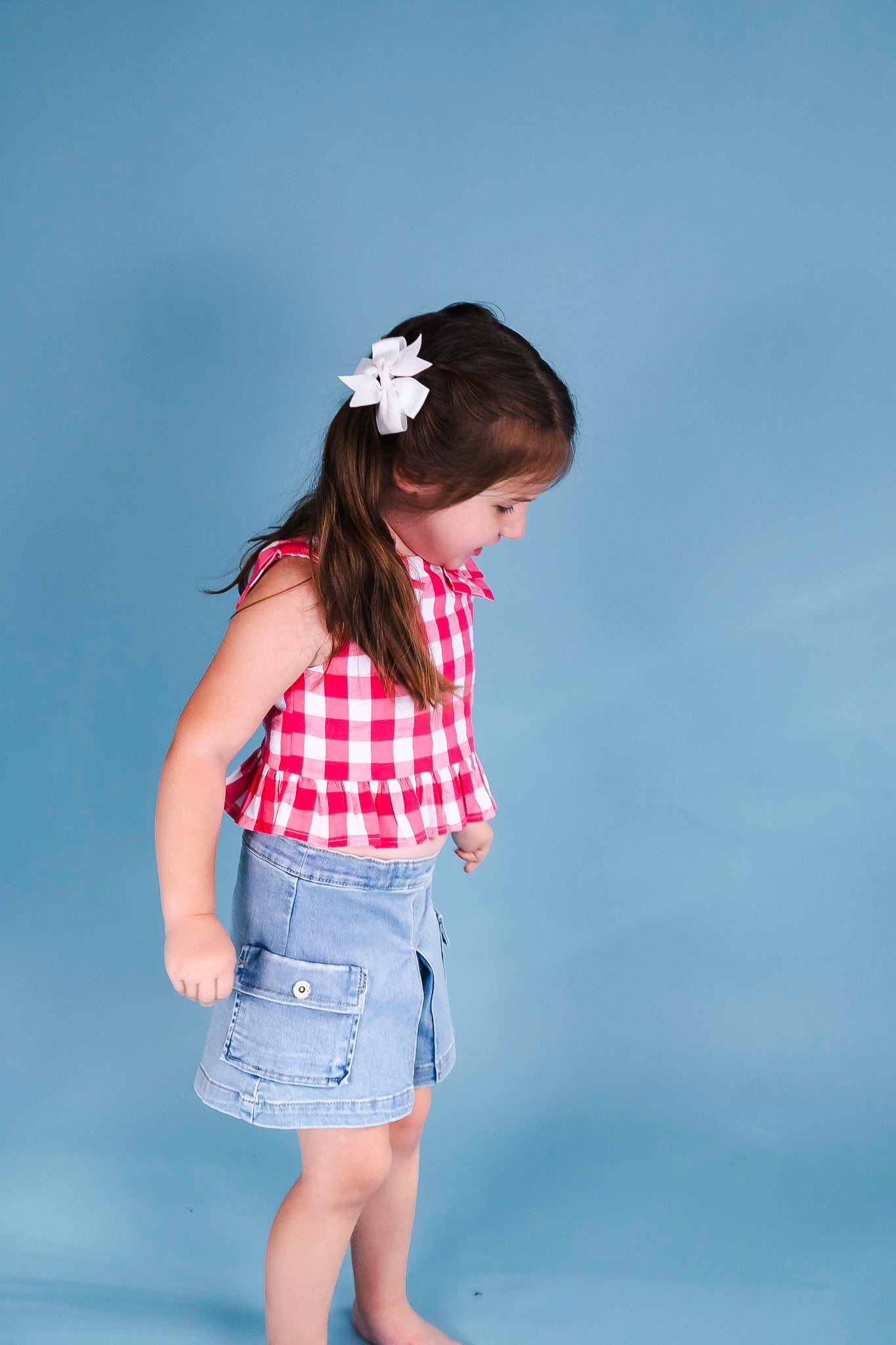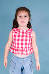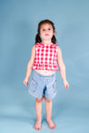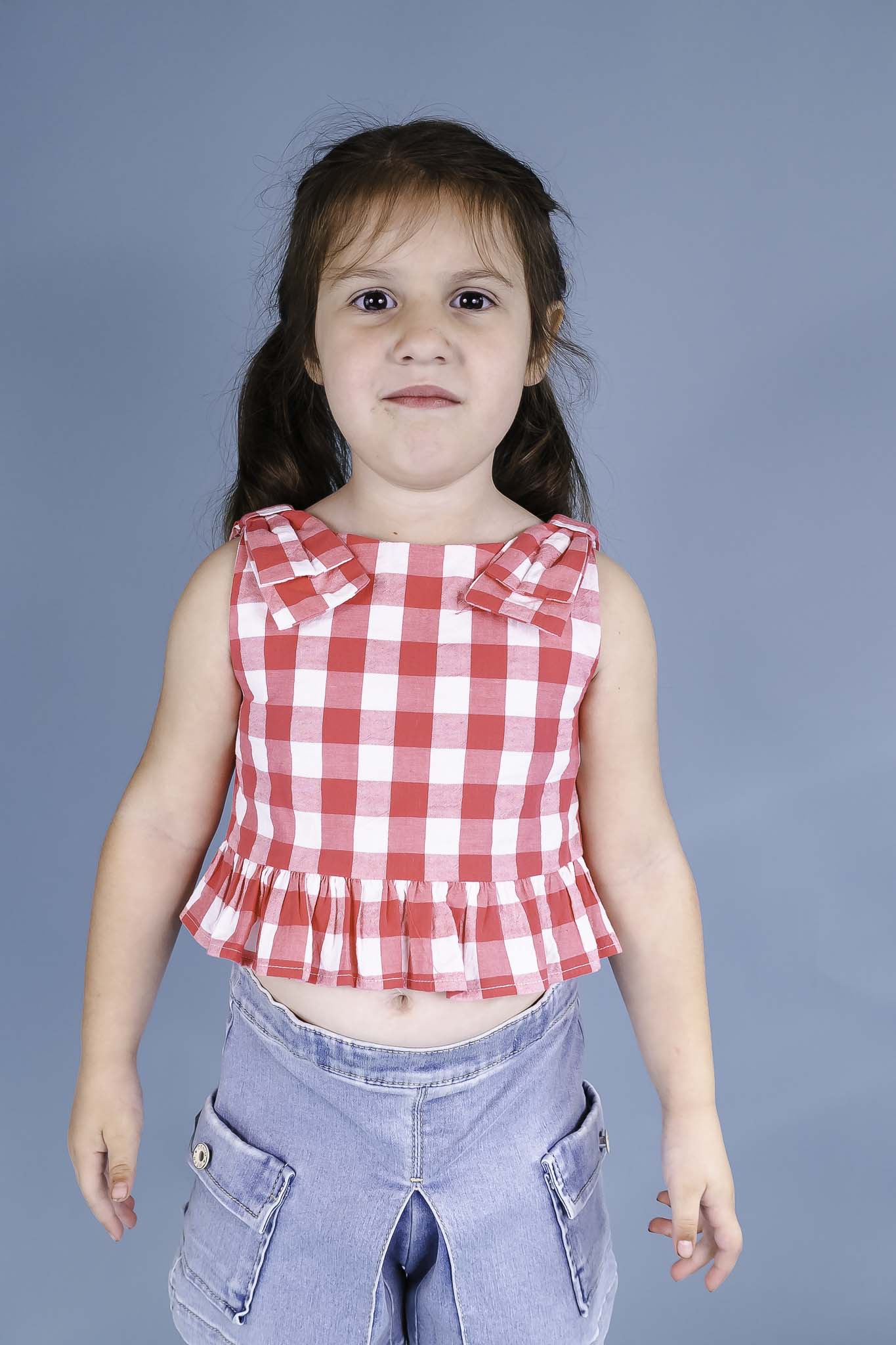 This Mayoral peplum top features a red check print and bow details on the shoulders. Add a pair of denim shorts for a sweet summer look.