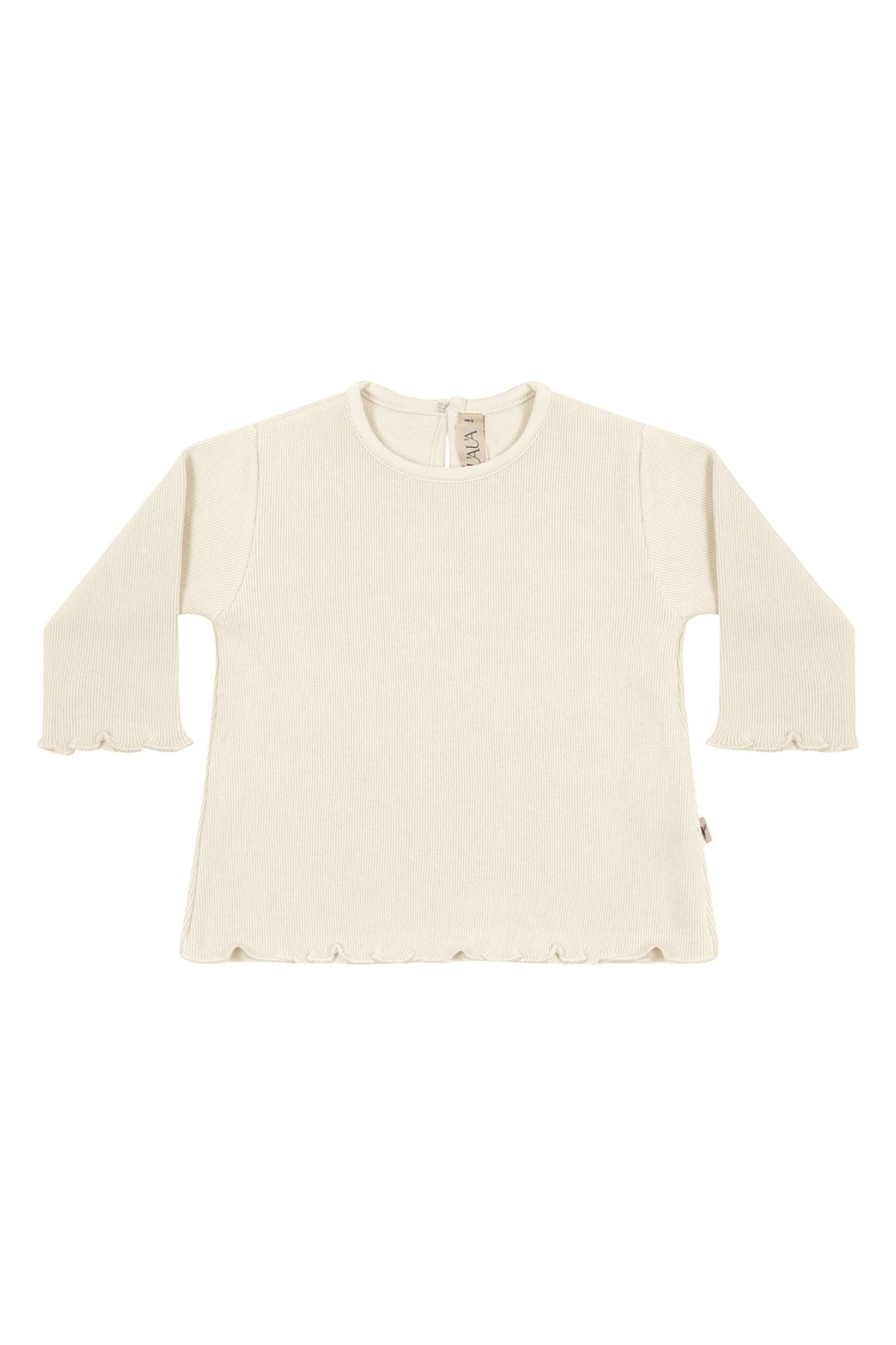 Outfit baby girl in this pretty, long-sleeved shirt from UAUA. Made of 100% Pima cotton, it features long sleeves, a lettuce edge hem, and closure at the back neck.