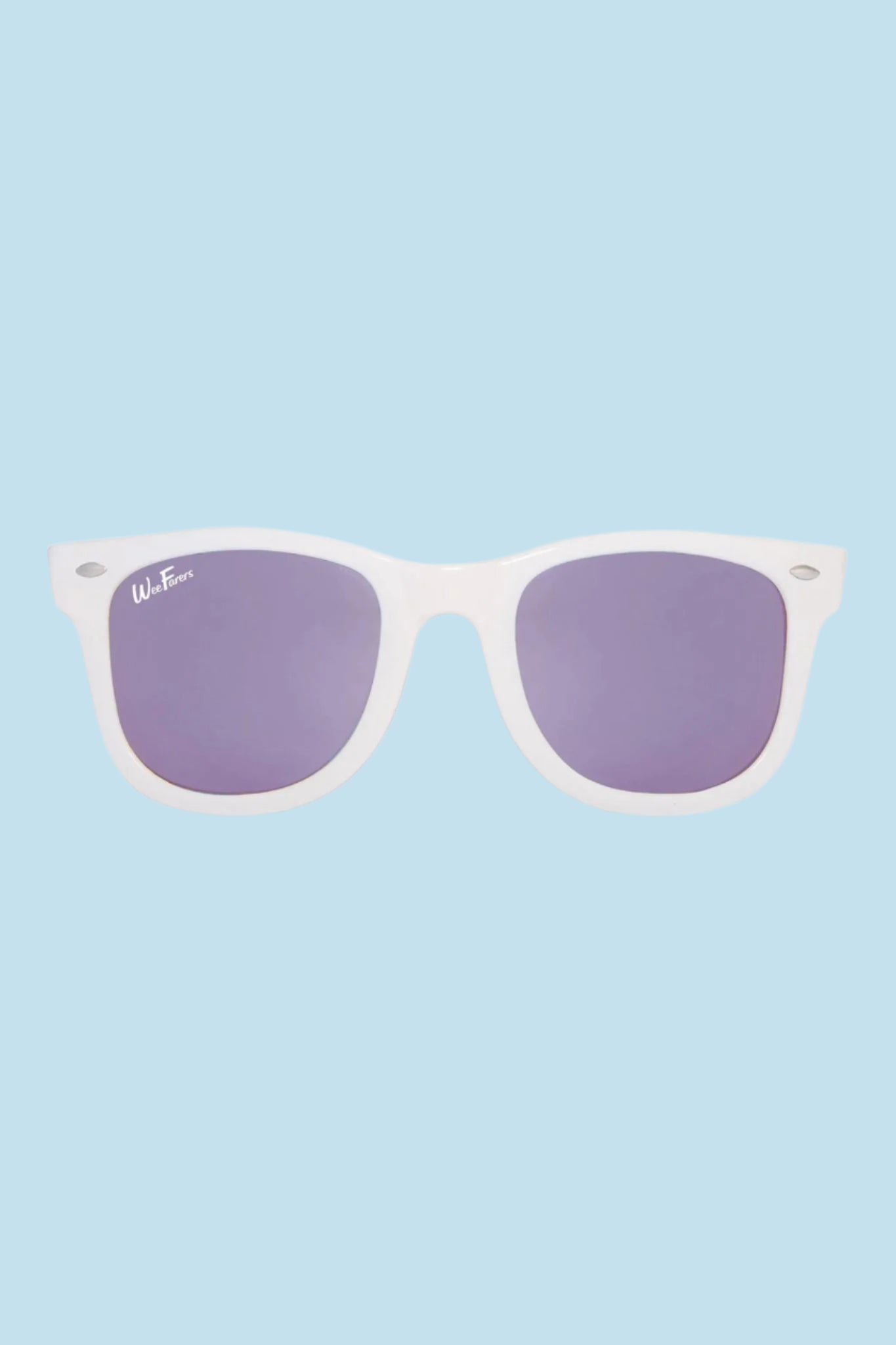 An eye-deal summer accessory. These WeeFarers sunglasses feature white frames, purple polarized lenses, and aim to shield your child's eyes from harsh UV rays.