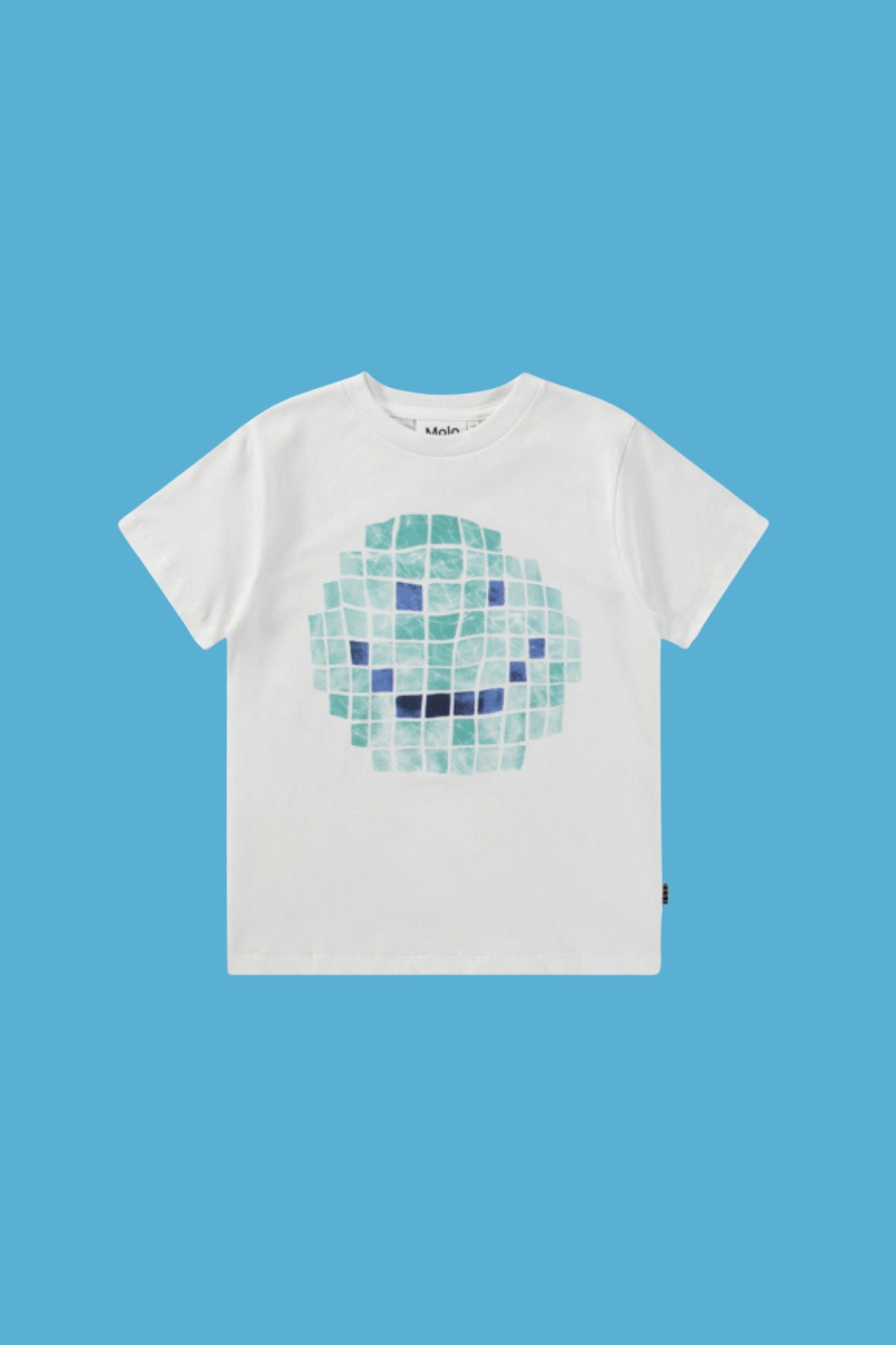 Smile! This unique graphic tee by Molo comes in white and features a blue happy face made up of tiles. Add a pair of shorts and sneakers for a school day outfit.
