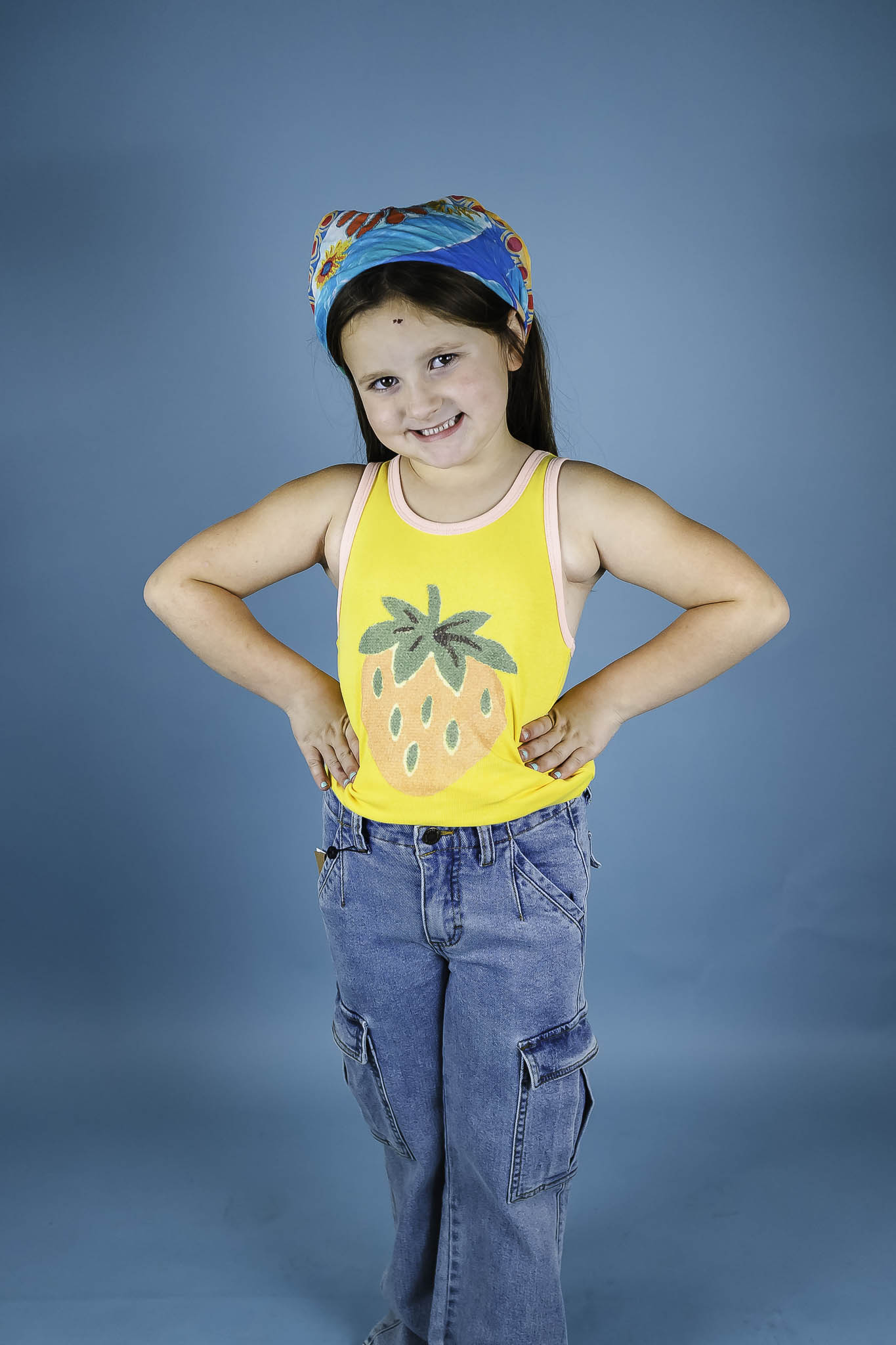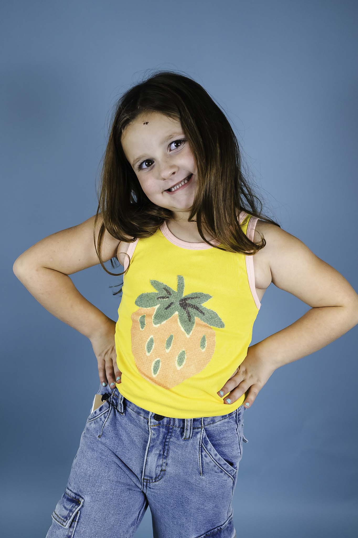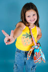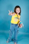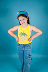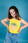 This fun tank from Molo comes in a bright yellow hue and features a strawberry graphic. Light pink contrast trim lines the neck and armholes.