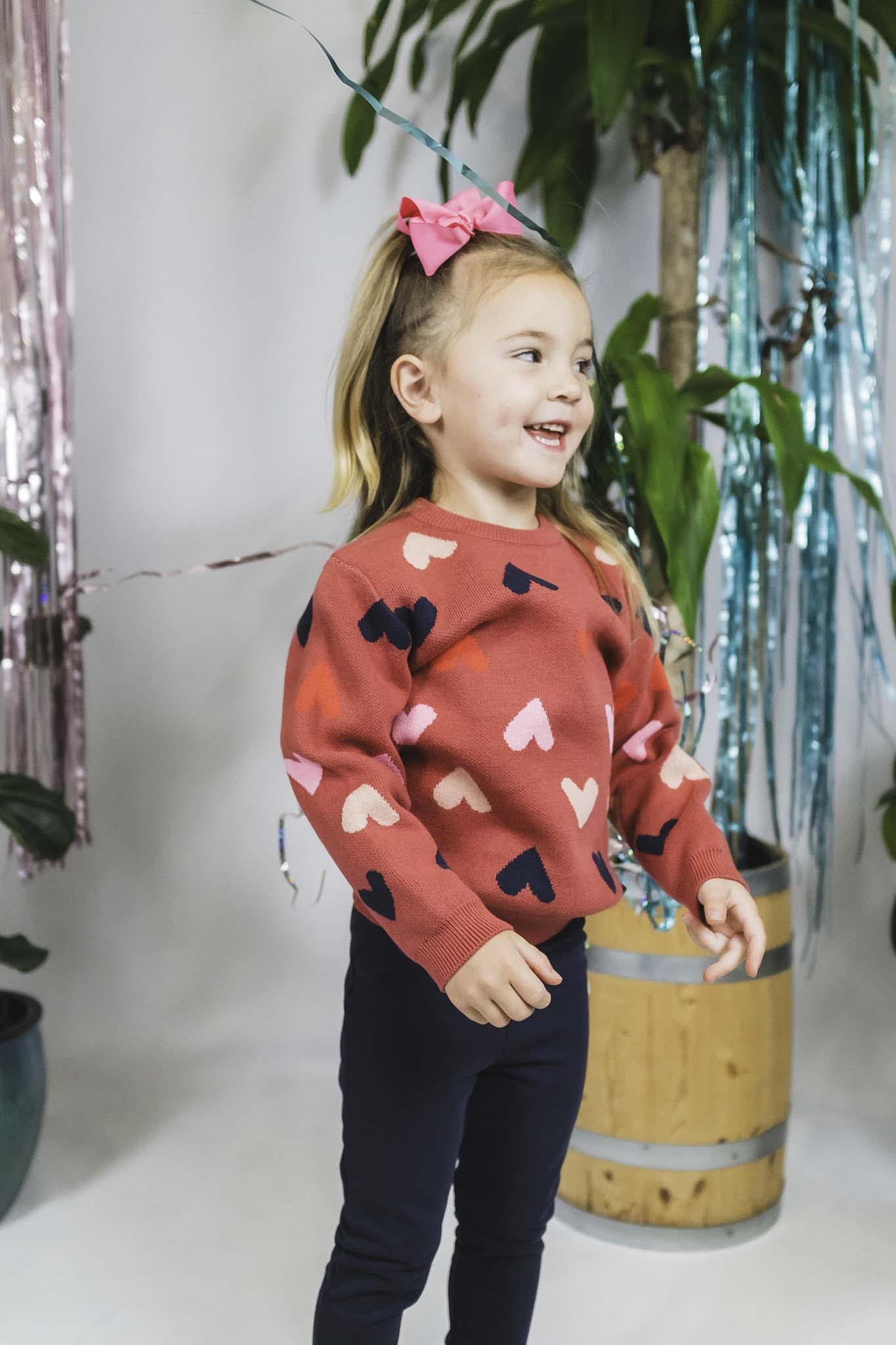 We have lots of love for this cozy sweatshirt by Baby Face! It comes in a ruby hue and features hearts printed throughout. The oversized silhouette makes it perfect for pairing with fitted jeans and leggings.