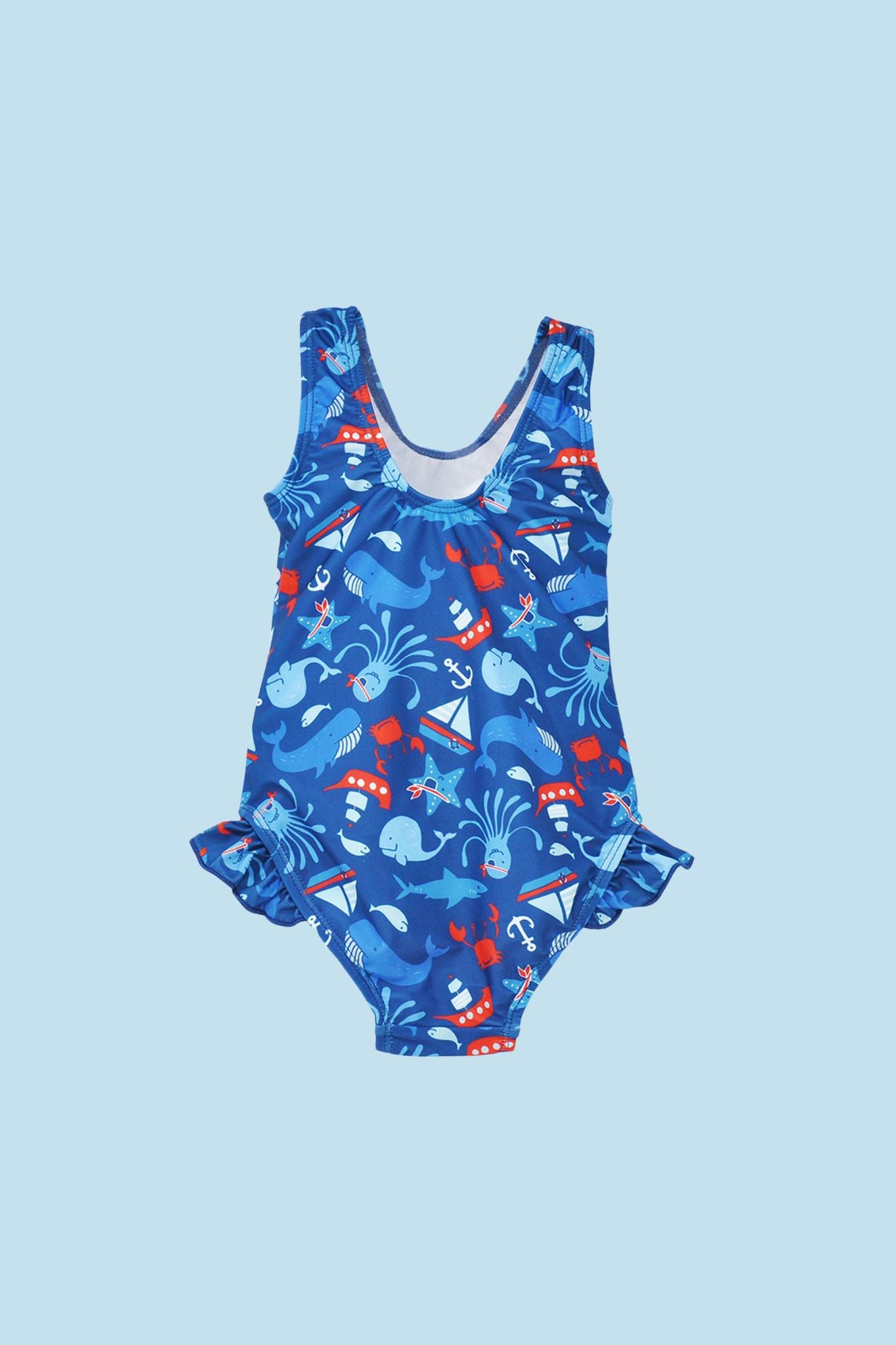 Ruffle Nautical UPF 50 Swimsuit (Toddler Girl)