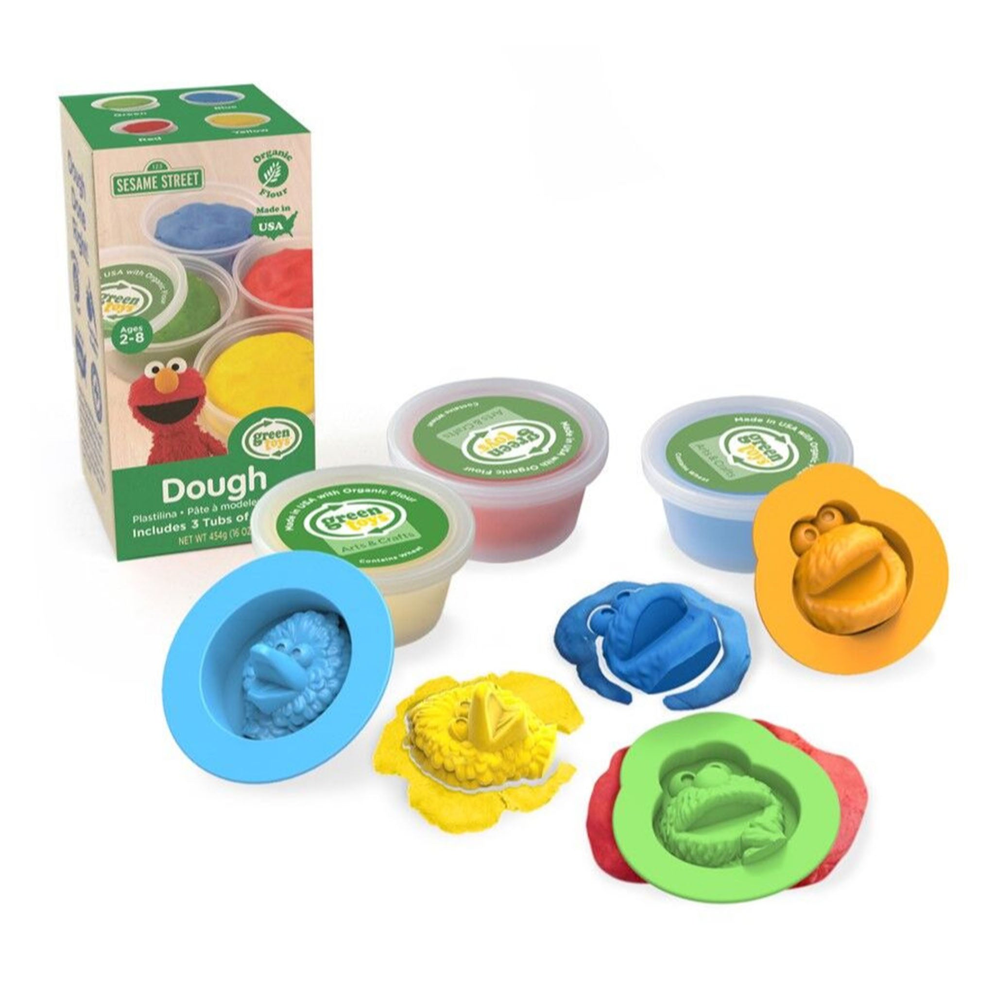 Have fun with Elmo & Friends! This Green Toys dough set comes with three character stamps and three tubs of dough.