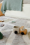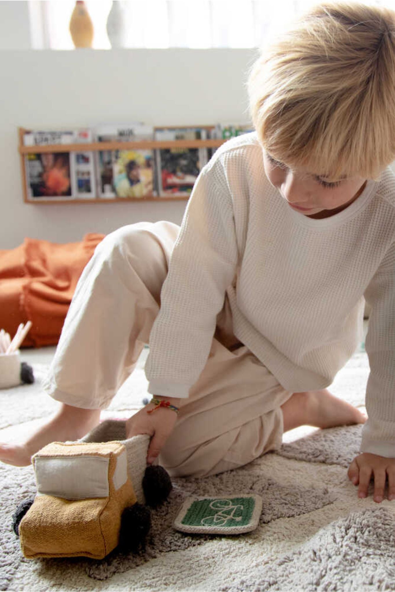 Make tidying up an enjoyable task with these adorable mini baskets from Lorena Canals designed as stuffed pick-up trucks! With fluffy pom-pom wheels and a playful "L0 R3 NA" license plate, these trucks add a touch of fun to every chore. Ideal for storing small treasures like crayons, marbles, beads, toys, game pieces, and more, they’ll help little ones stay organized while enjoying their own vroom-vroom adventure!