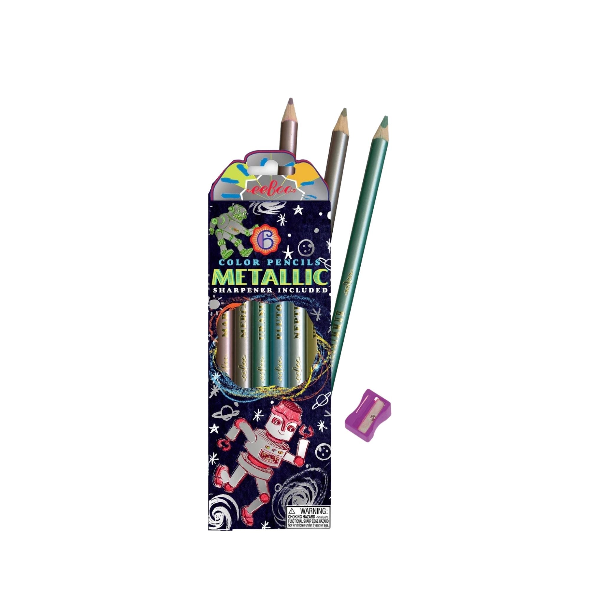 Pair these perfect pencils by Eeboo with the Silver Robots sketch book! All six of them are easy-to-grip and feature a metallic sheen when coloring.