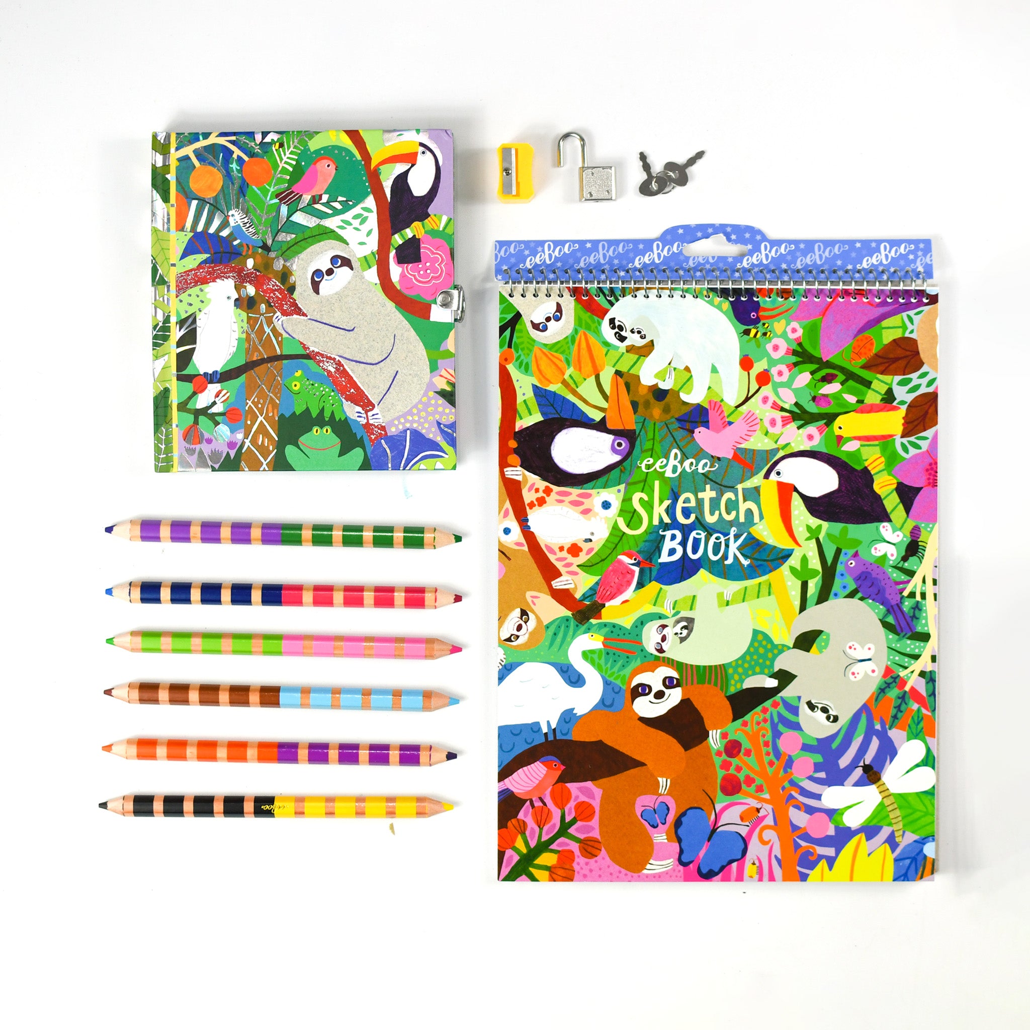 Sketch it out! This beautifully illustrated sketch book by Eeboo features animals on the cover and 60 matte pages to get creative with.