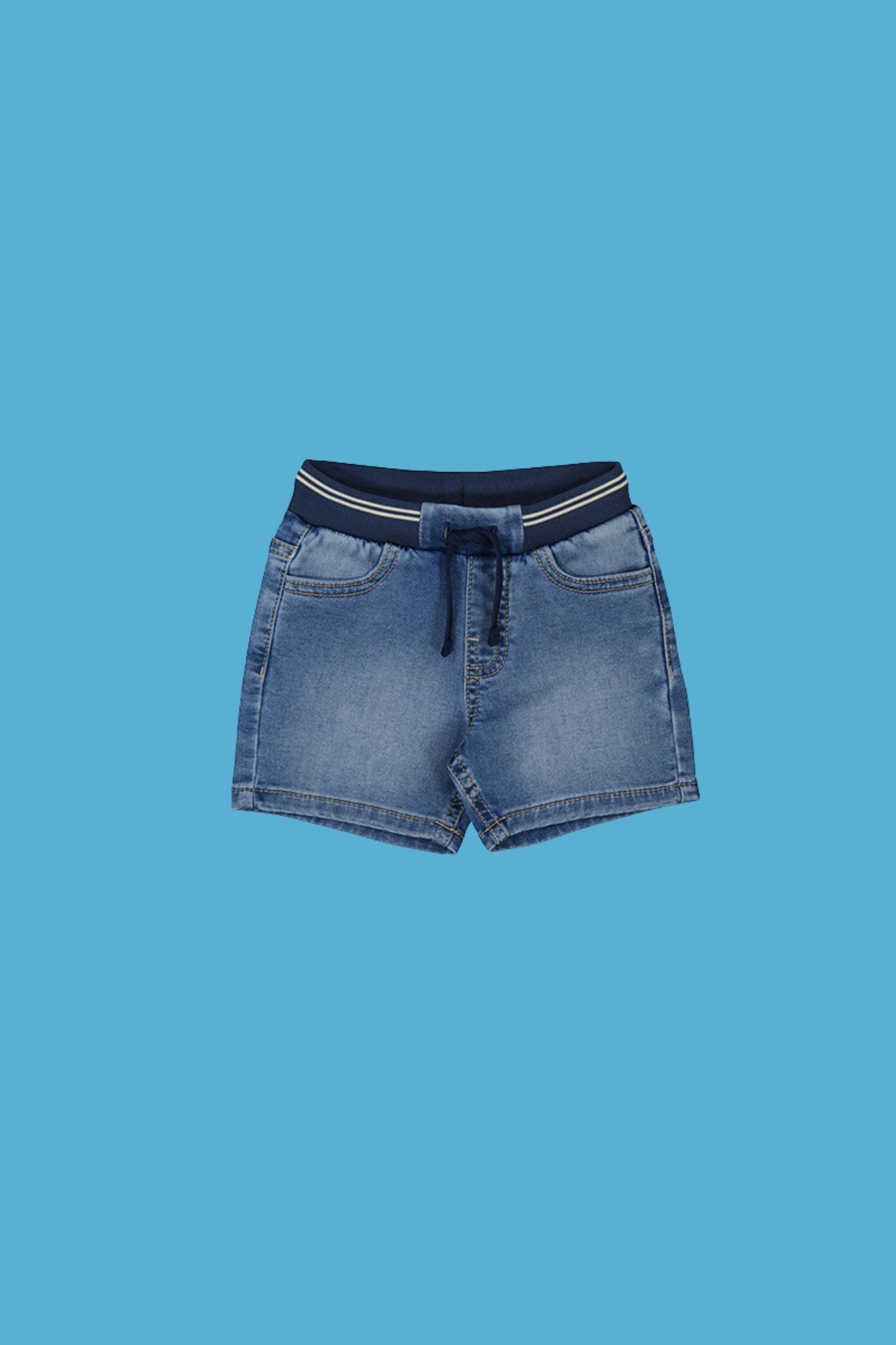 Baby boy is all cozied up in these denim shorts from Mayoral! They feature a drawstring waist and soft denim handfeel. A sporty waistband makes for a unique accent. Pockets adorn the back and front.