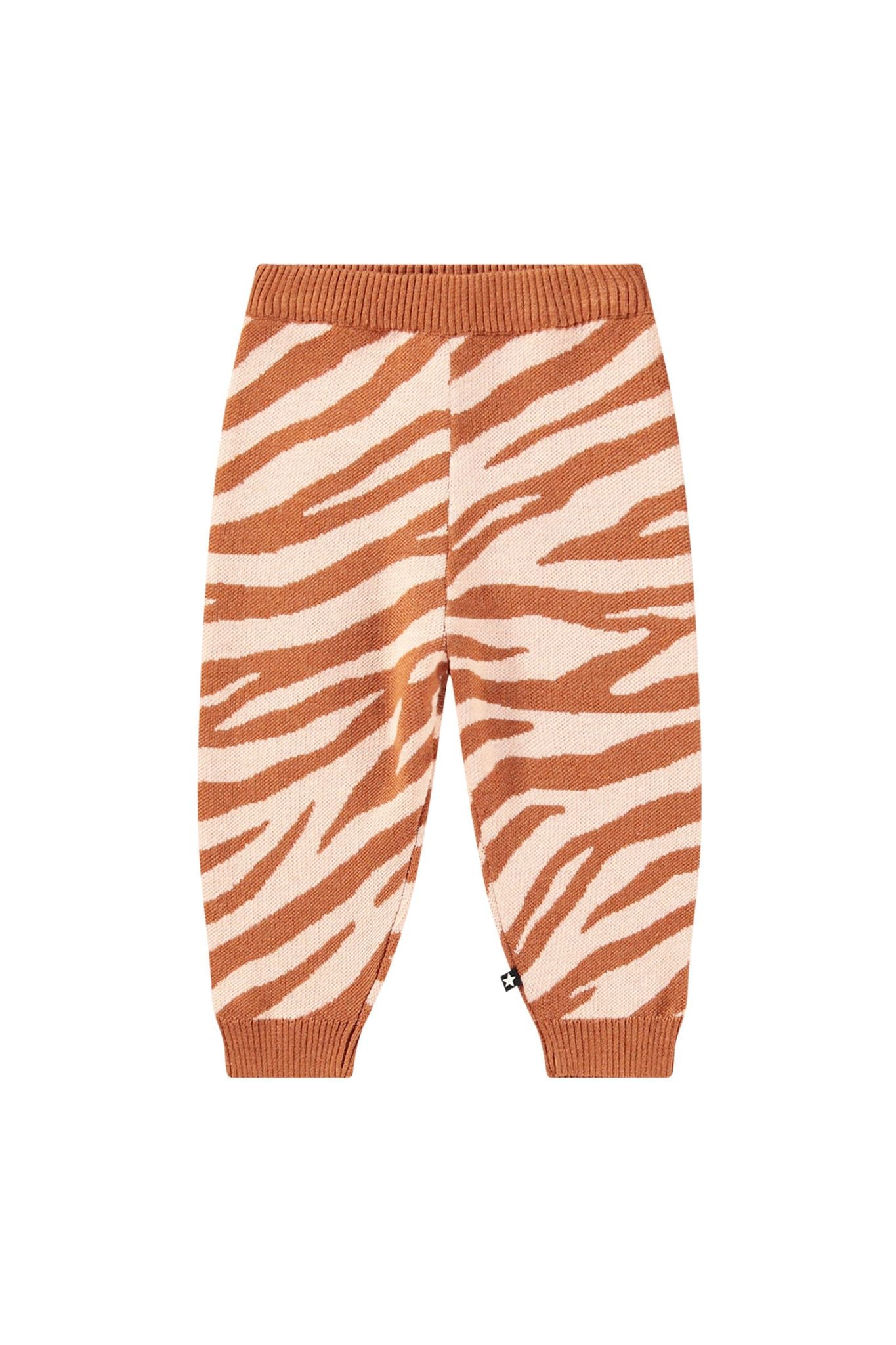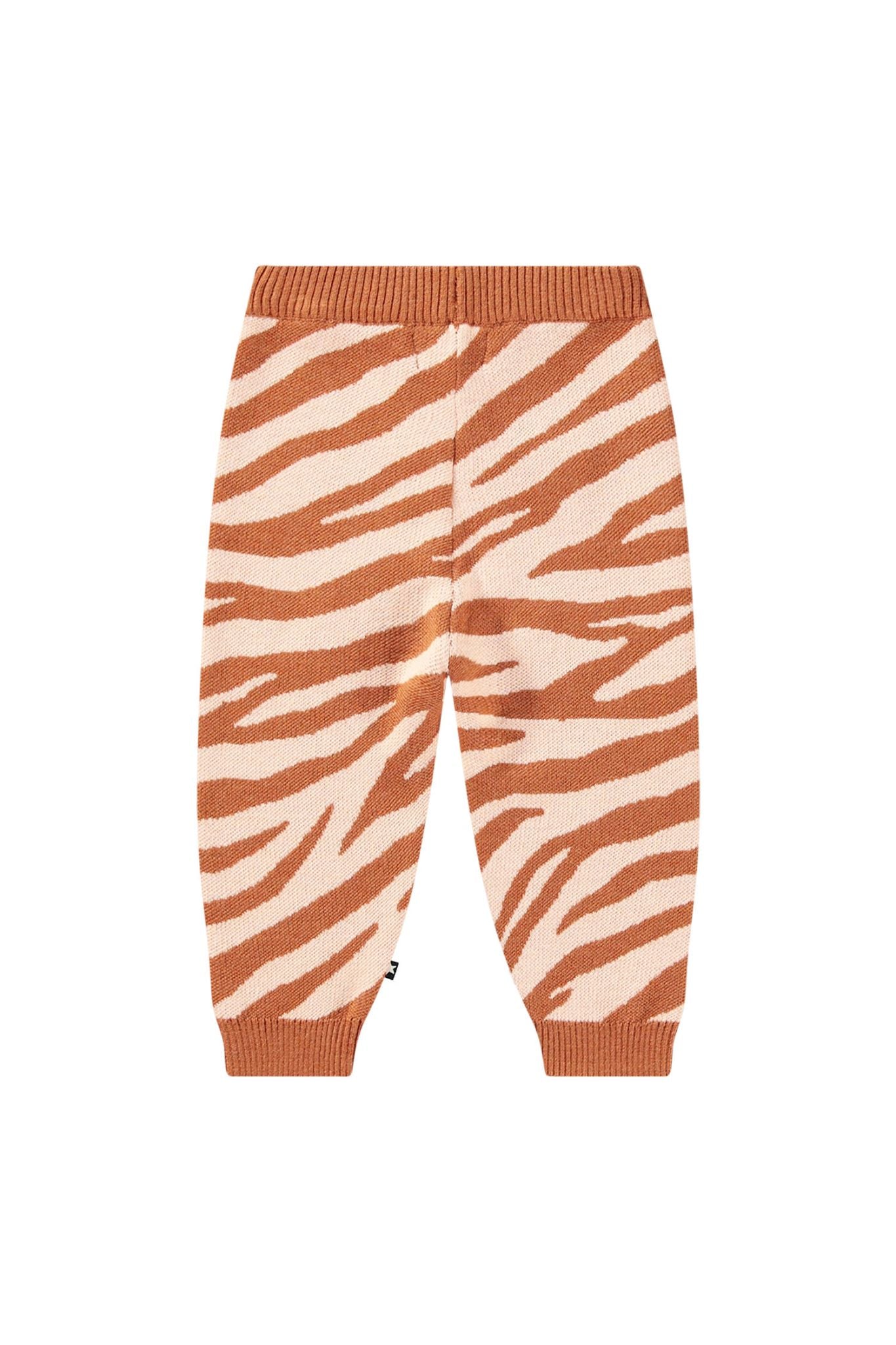 These wild pants from Molo are soft to the touch! They feature an orange zebra print, as well as ribbing at both the waist and ankles.