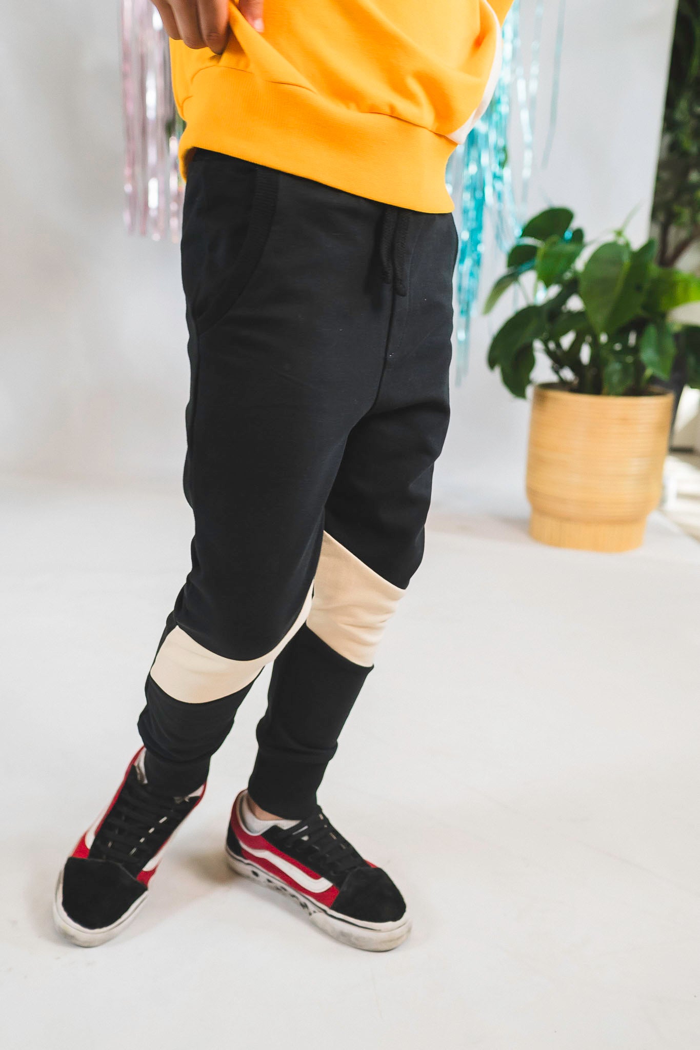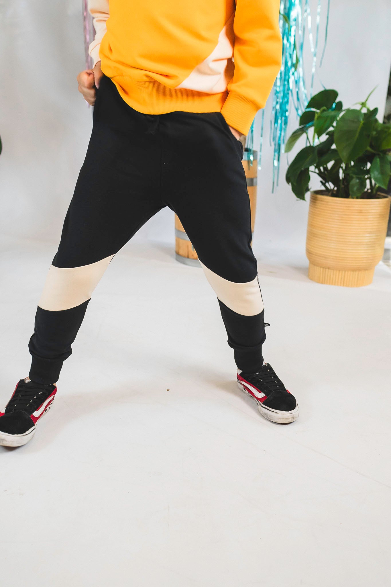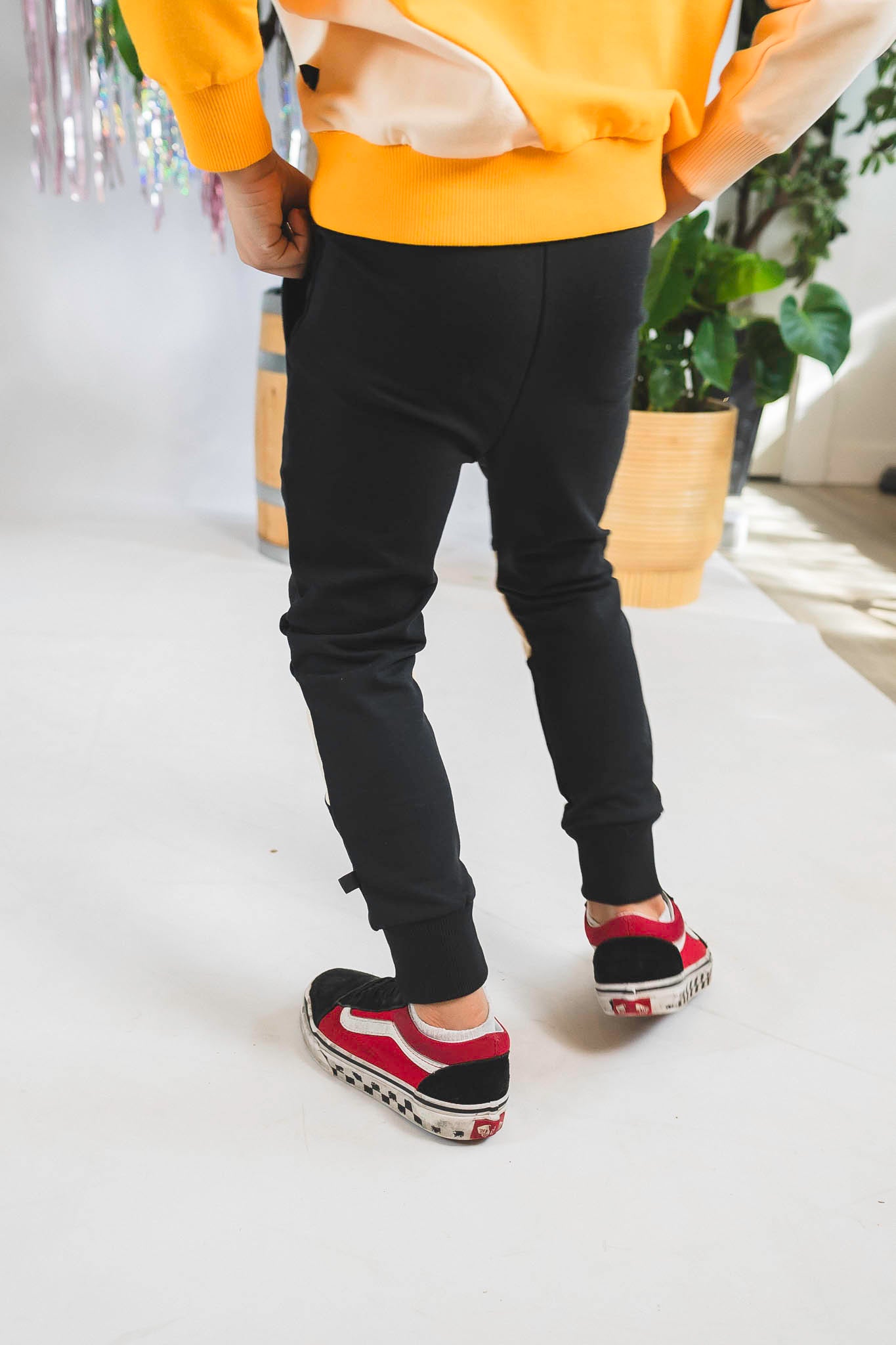 Outfit your little one in these comfy, everyday joggers by Carlijnq! They come in black and feature diagonal stripes on the legs. A drawstring waistband makes for a good fit, while slit pockets hold all your little one's treasures.