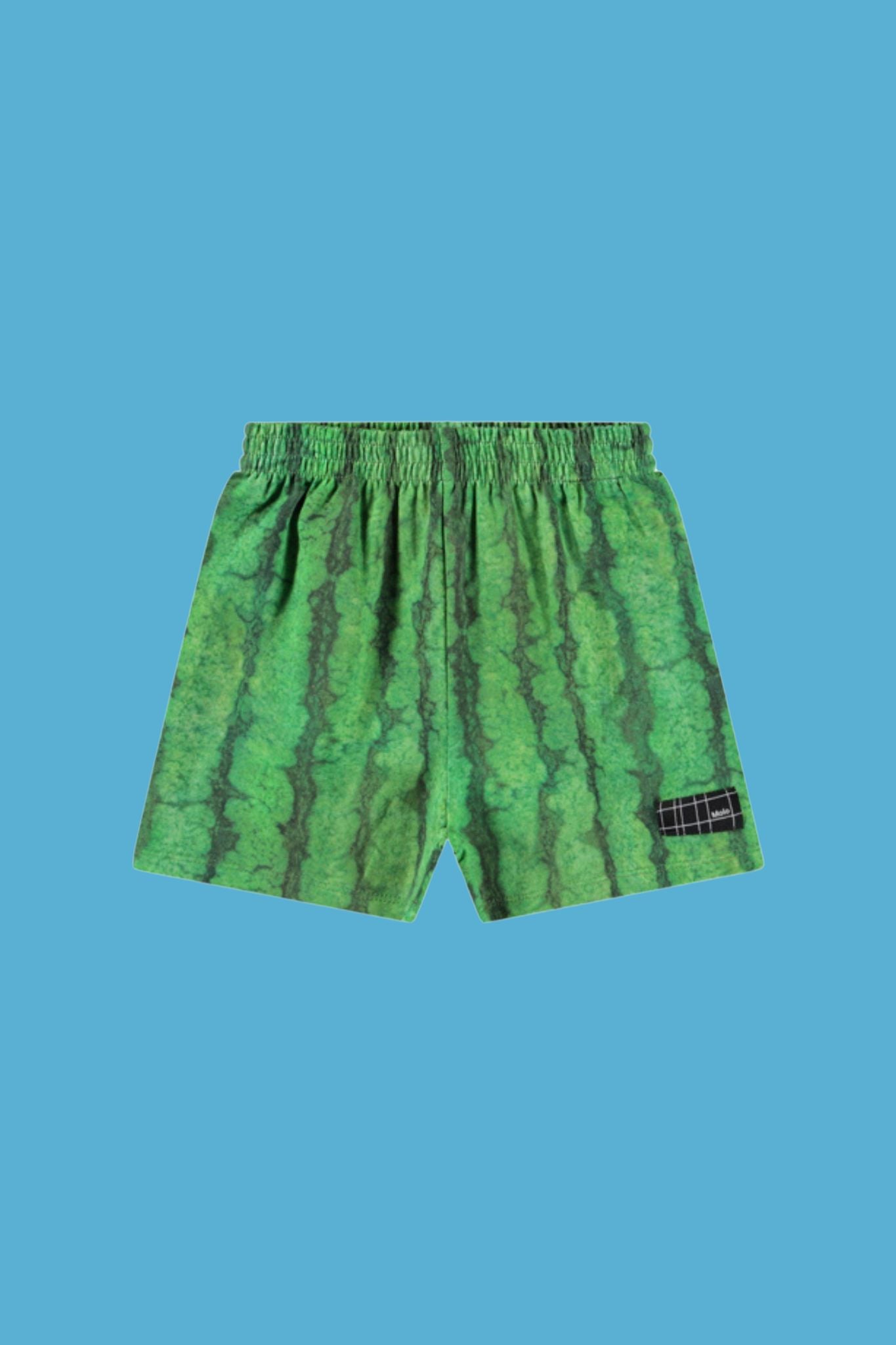These Molo shorts are a must-have summer piece for your little boy! They feature a green watermelon print on the outside and an elastic waistband. A brand logo patch adorns the lower thigh.
