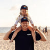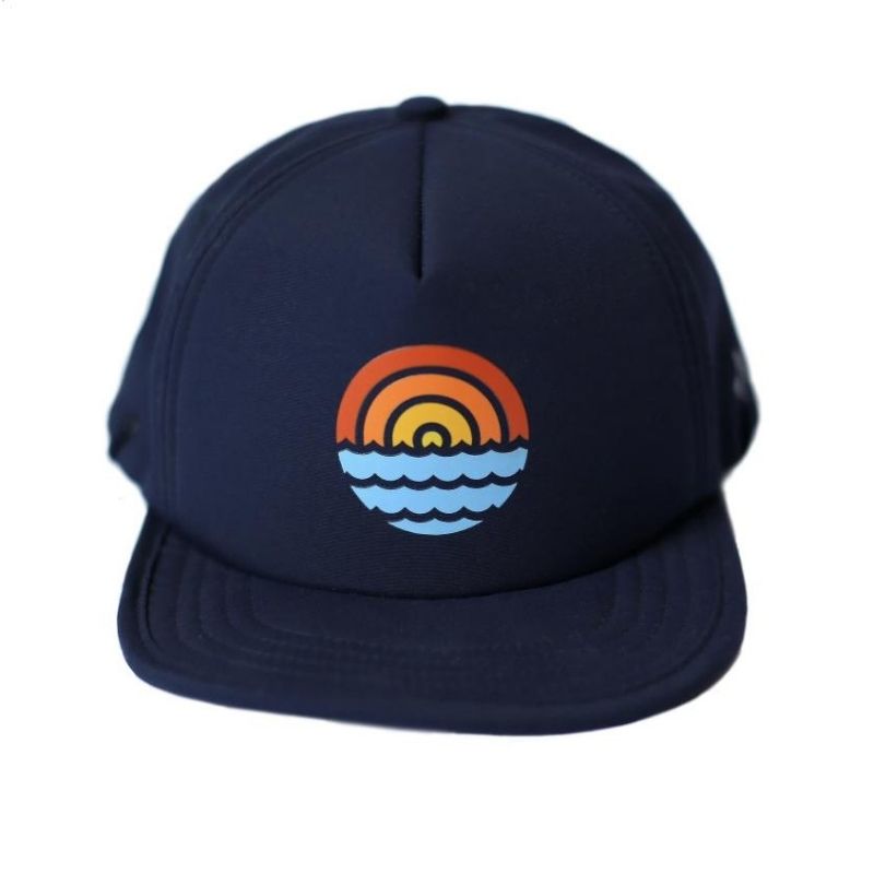 Hit the beach in this Bitty Brah hat! It comes in navy and features a printed sunset scene at the center.