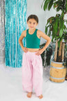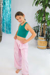 This bright green tank top from Molo serves as a summertime staple in your girl's wardrobe. It features a sweet design at the side hem that reads, 'more love.'