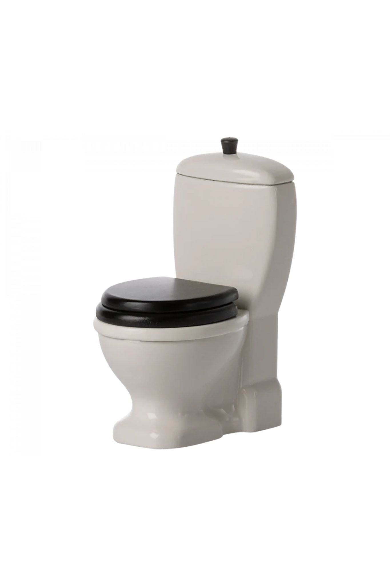 Complete the bathroom of your Maileg Mouse home with this convenient toilet. It comes in white and has black accents.