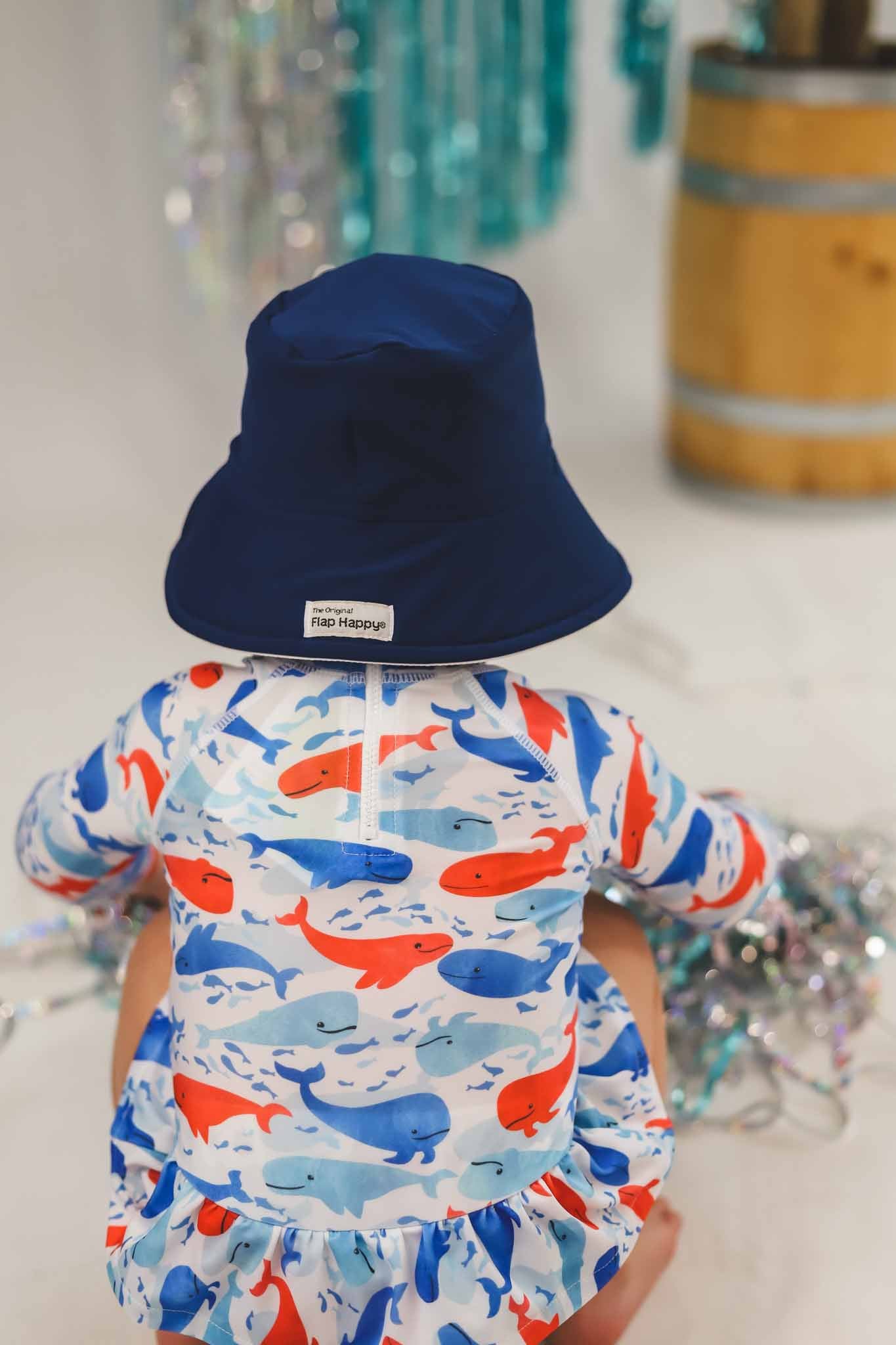A bucket hat is a must-have staple accessory for your little Bowfishie this summer! This one from Flap Happy comes in a navy-blue hue and features a chin strap for a secure fit. UPF 50+ helps to shield from harmful UV rays.