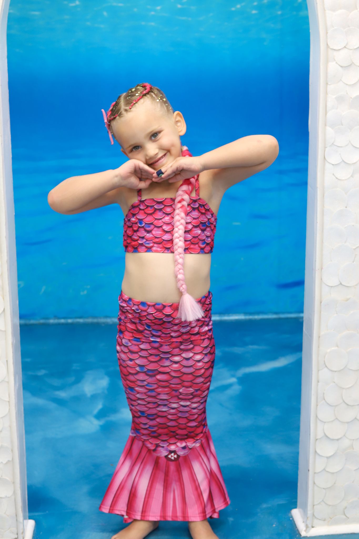 The newest addition to our mer-mazing Bowfish Studios merchandise! This pink walkable mermaid tail set features a matching top and our small Bowfish Logo at the bottom!